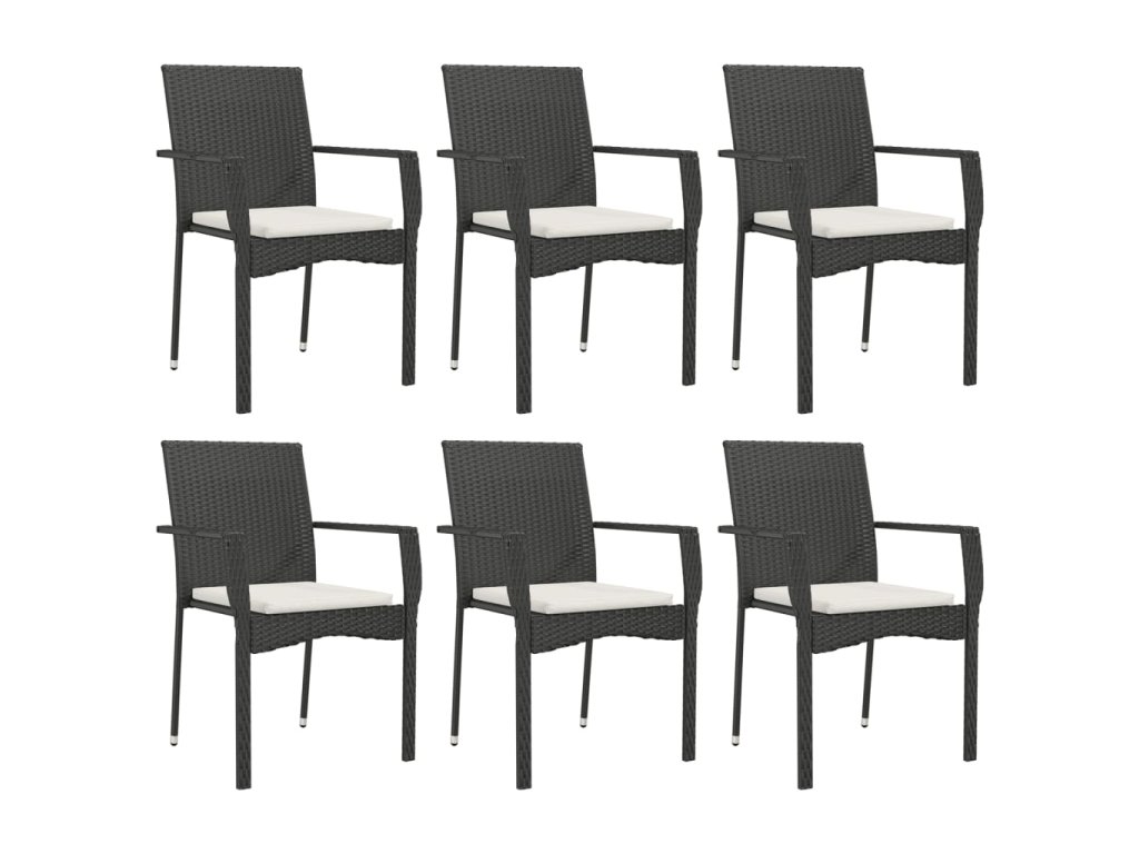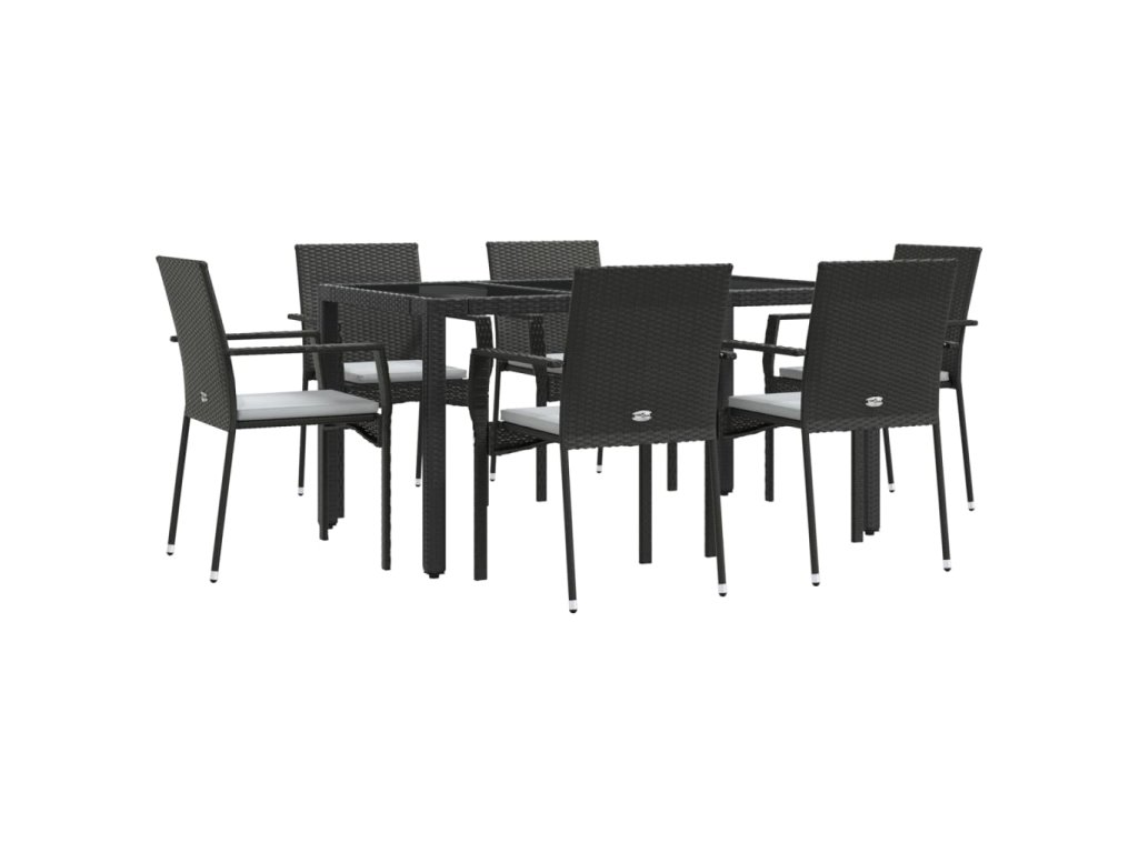 7dílný zahradní jídelní set s poduškami černý polyratan 3184978