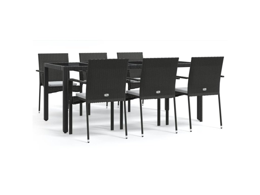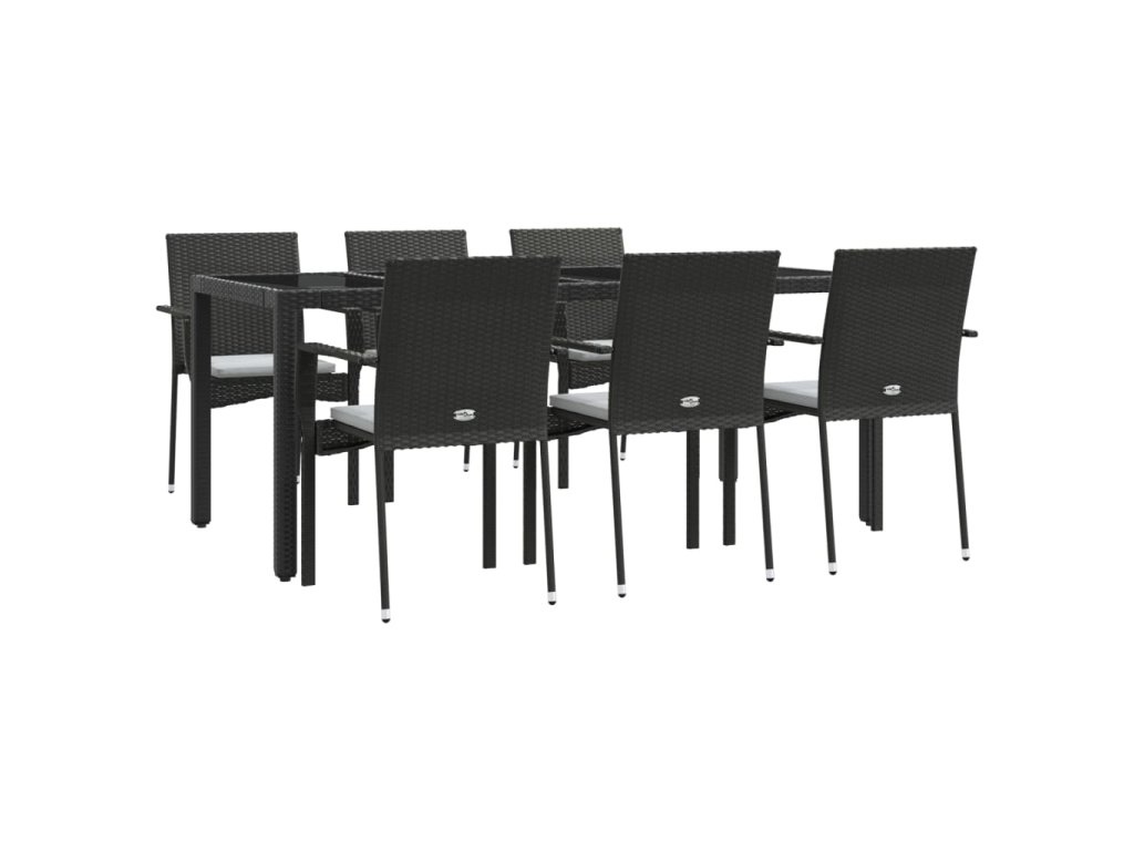 7dílný zahradní jídelní set s poduškami černý polyratan 3184979