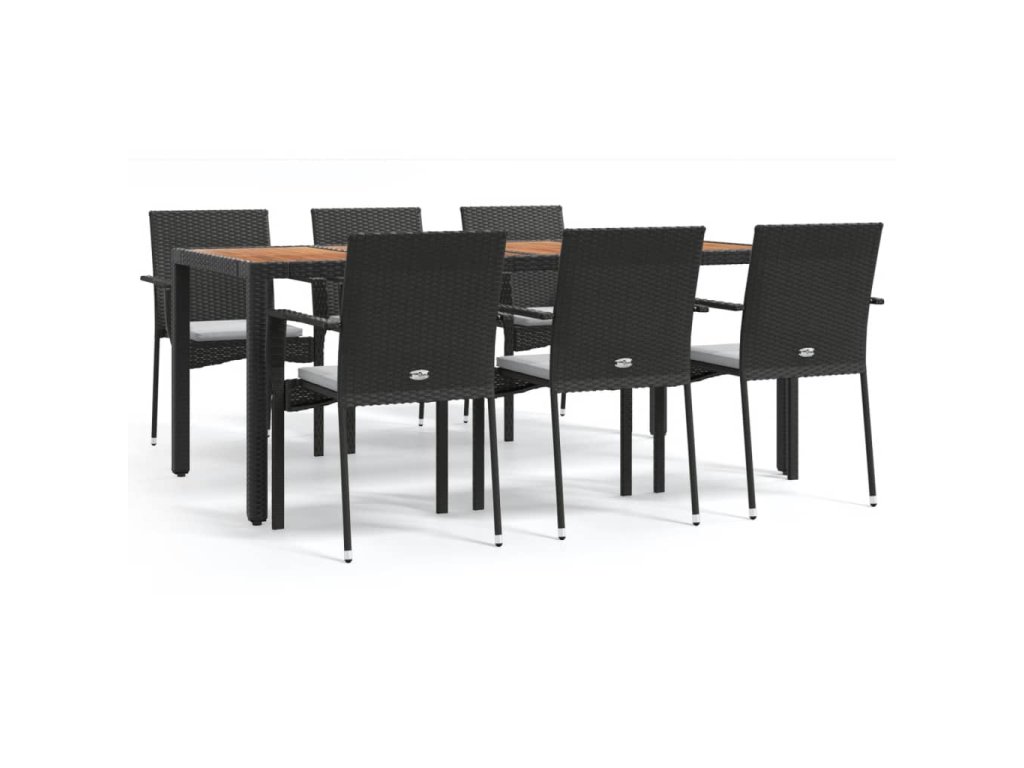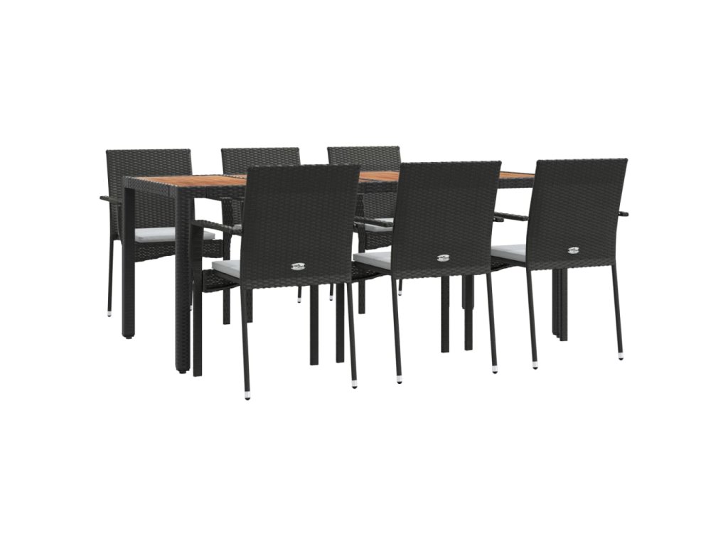 7dílný zahradní jídelní set s poduškami černý polyratan 3184991
