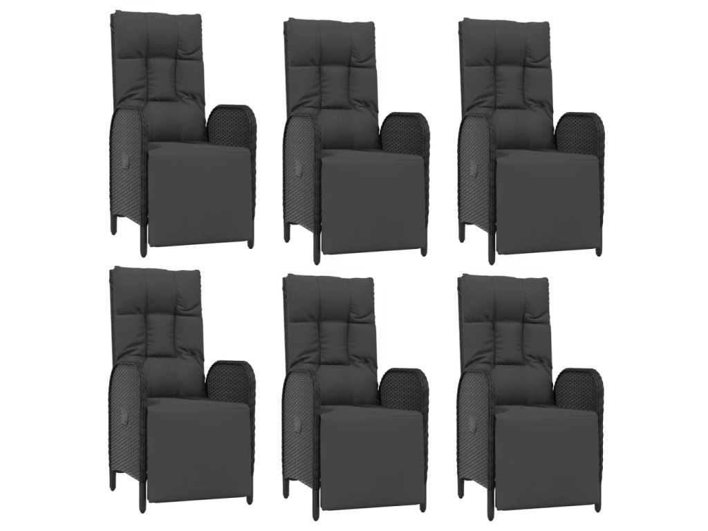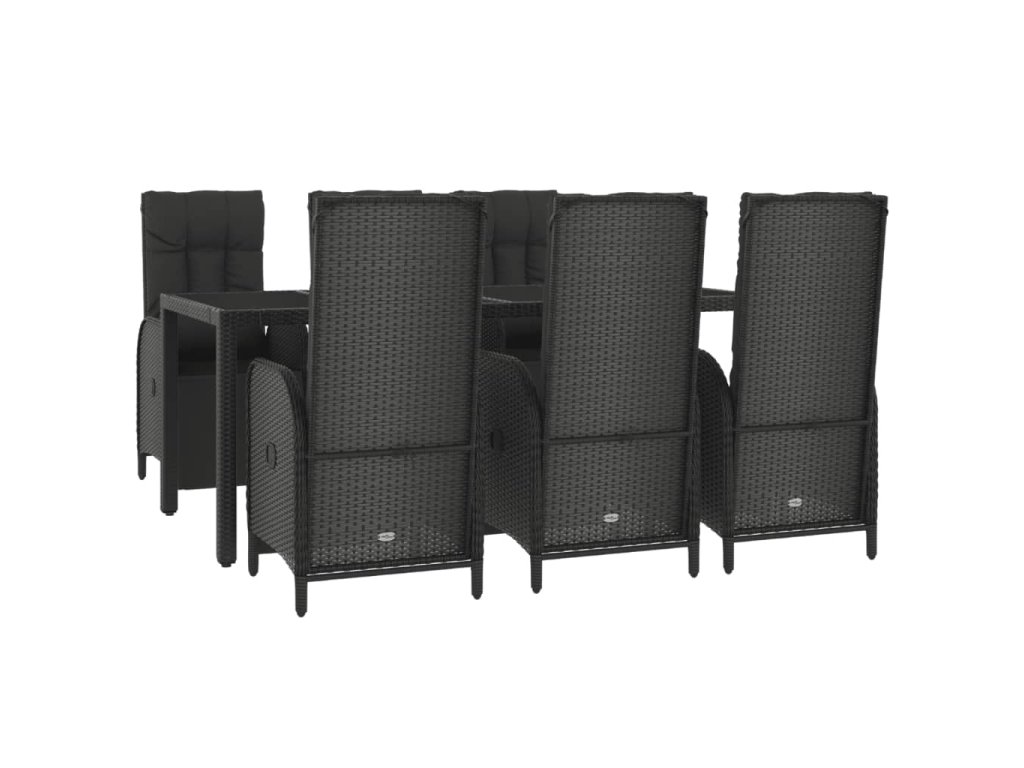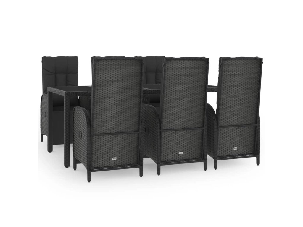 7dílný zahradní jídelní set s poduškami černý polyratan 3185063