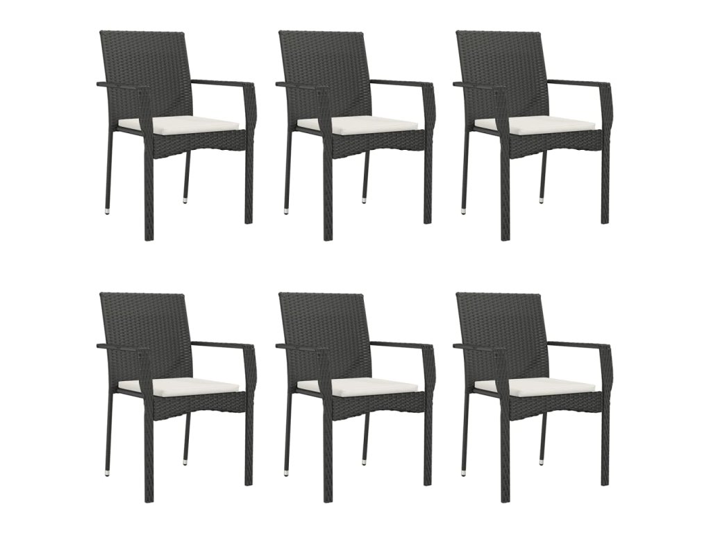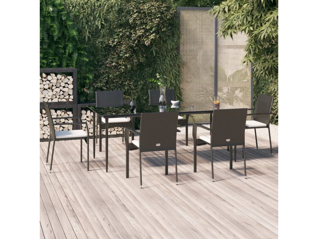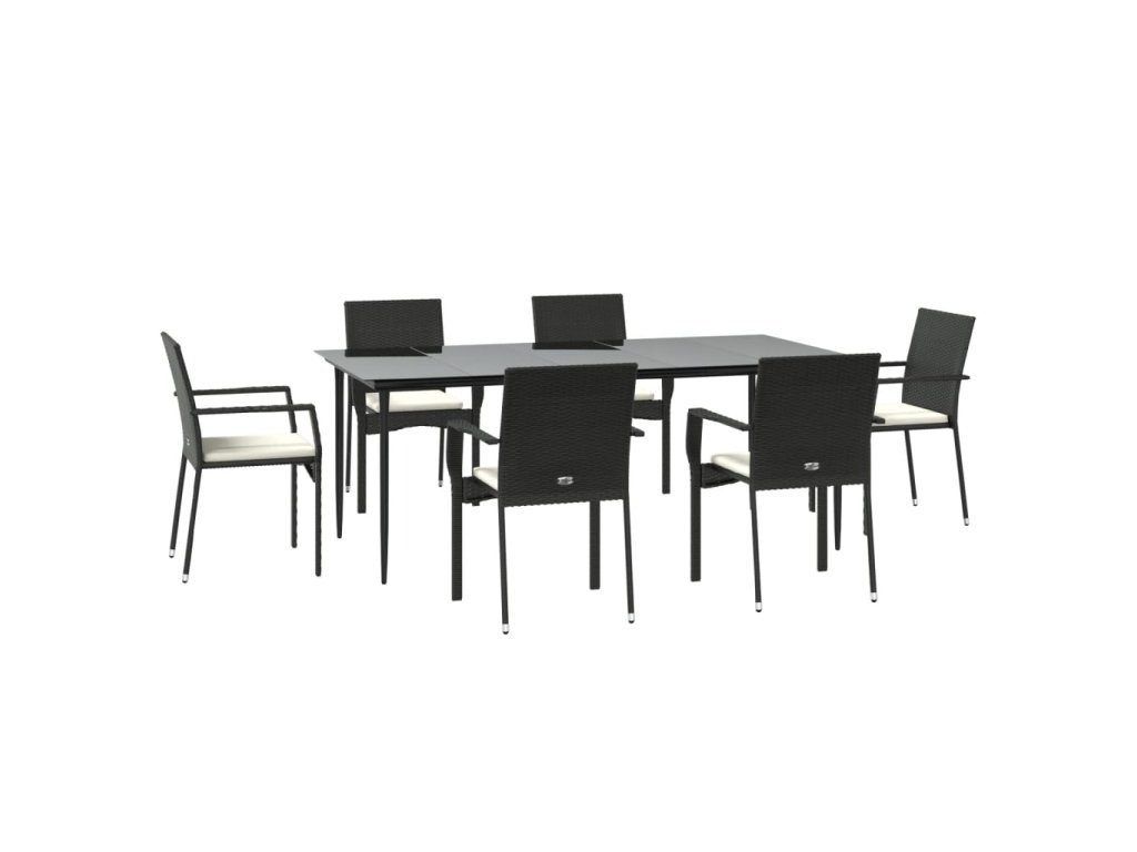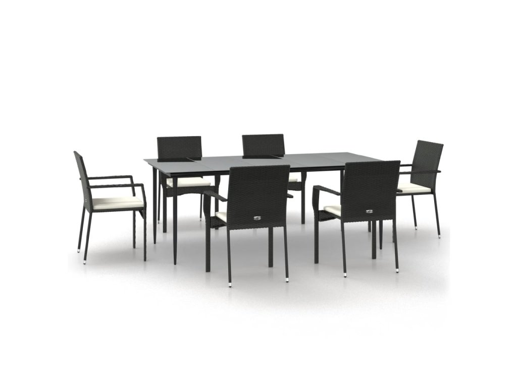 7dílný zahradní jídelní set s poduškami černý polyratan 3185123