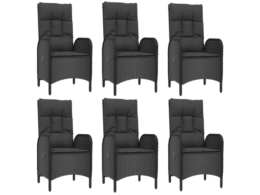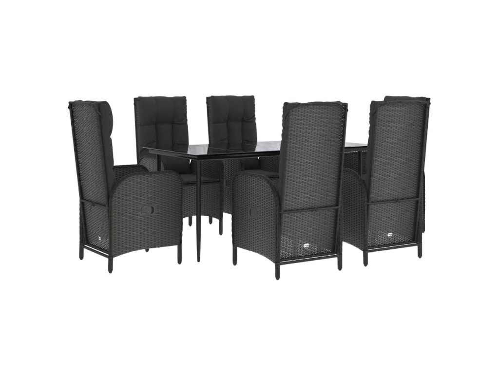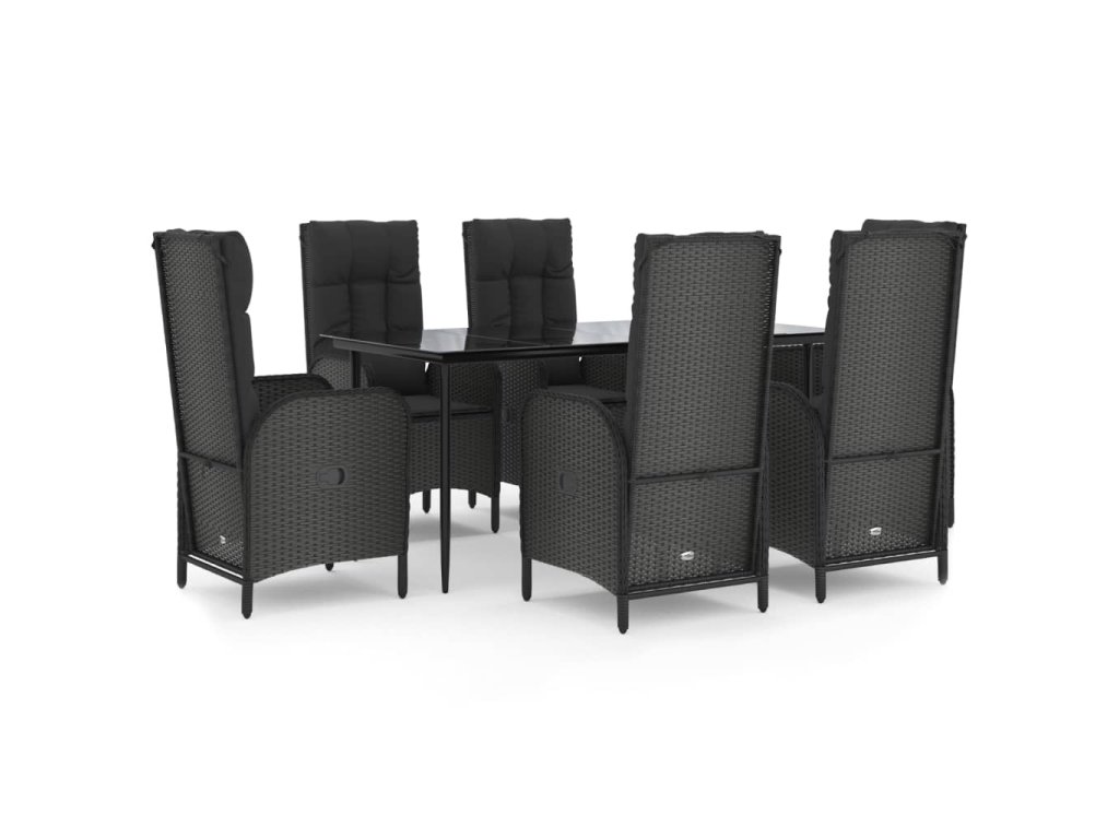 7dílný zahradní jídelní set s poduškami černý polyratan 3185172