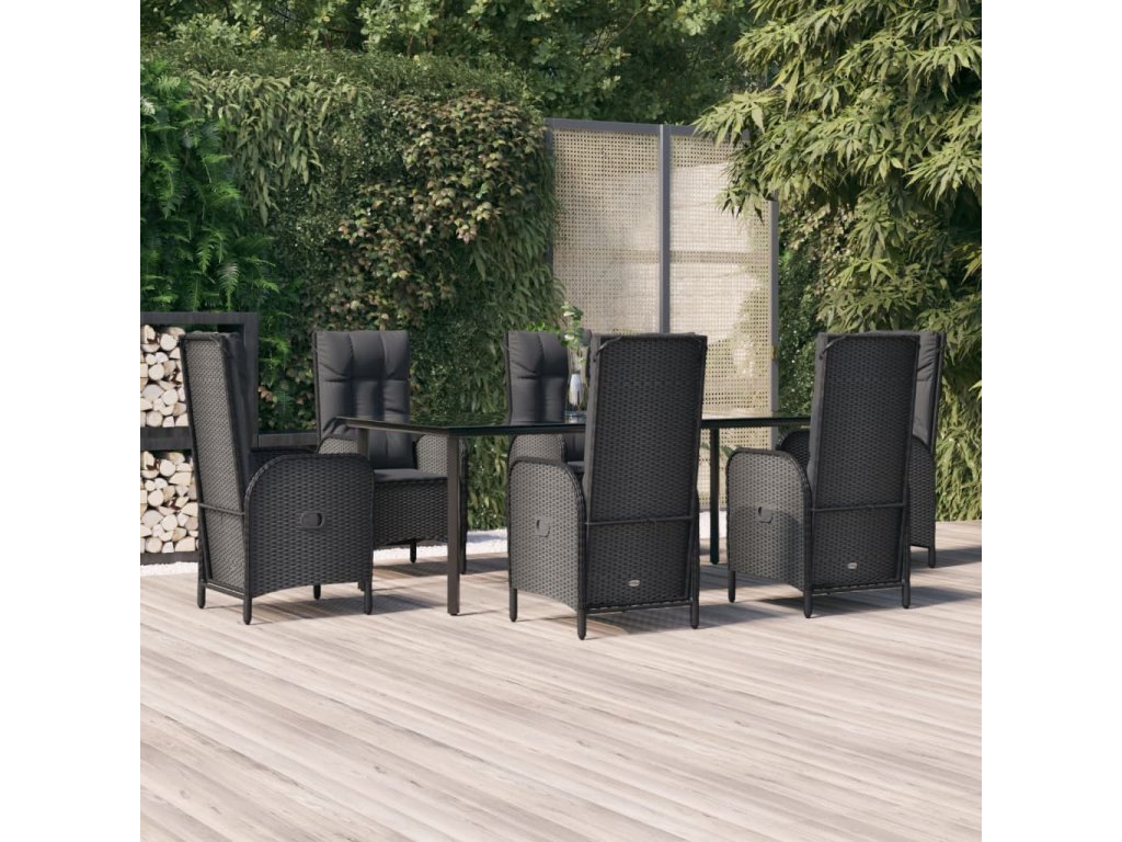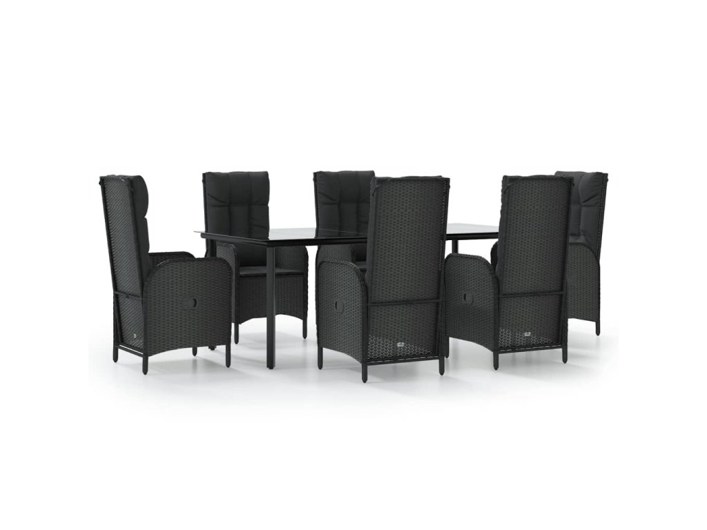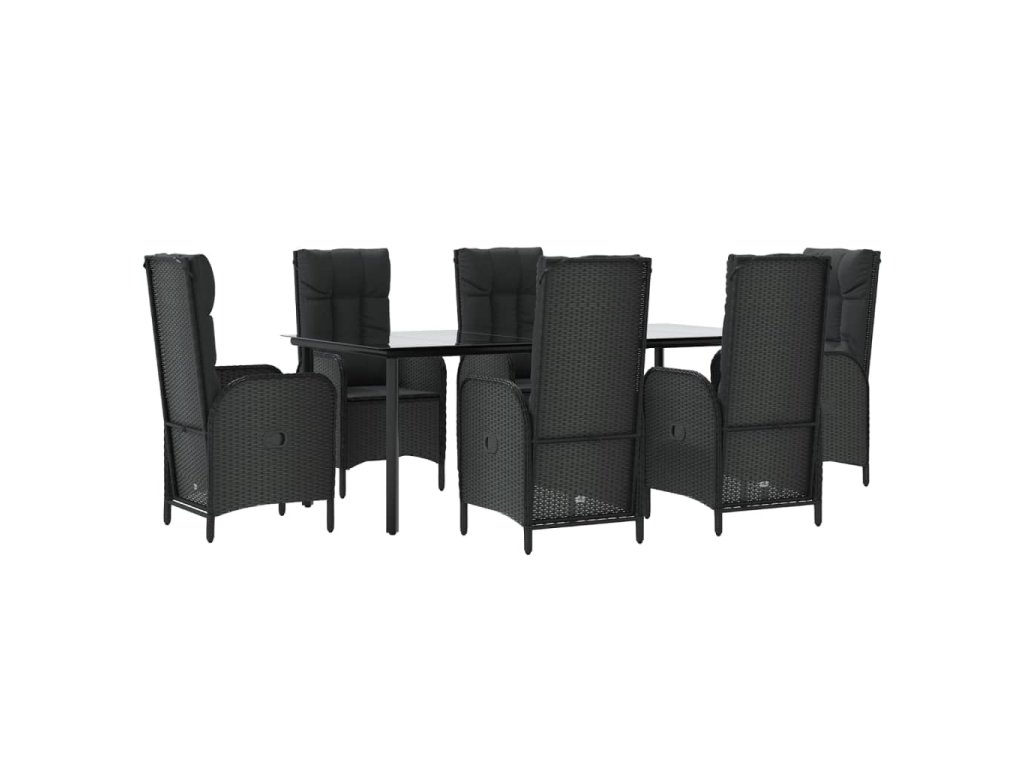 7dílný zahradní jídelní set s poduškami černý polyratan 3185193