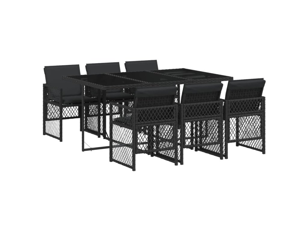 7dílný zahradní jídelní set s poduškami černý polyratan 3210727