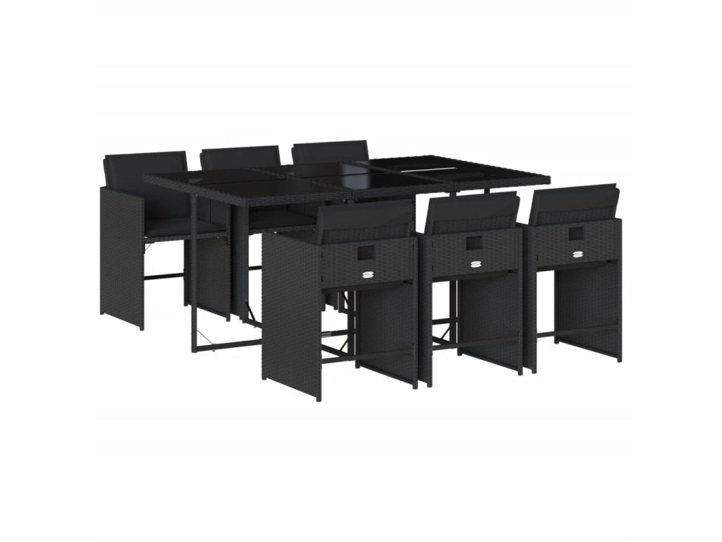7dílný zahradní jídelní set s poduškami černý polyratan 3211087
