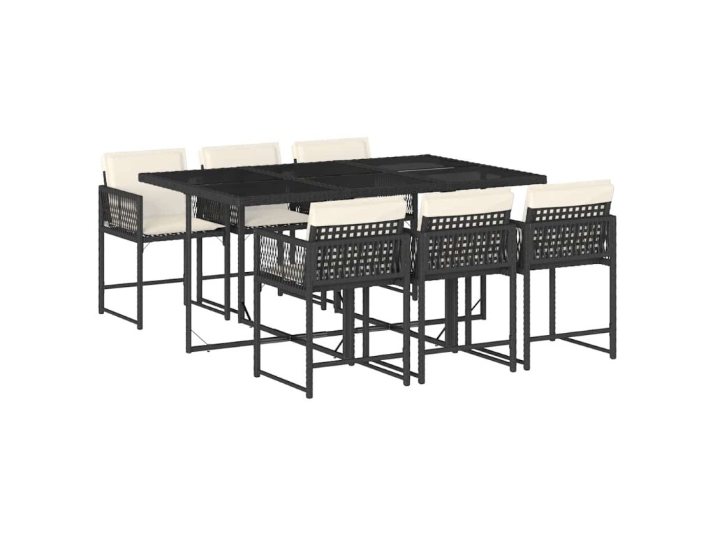 7dílný zahradní jídelní set s poduškami černý polyratan 3211446