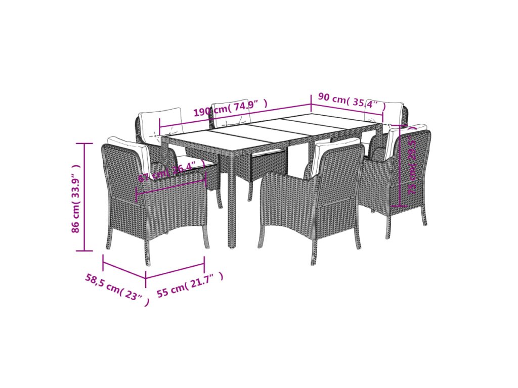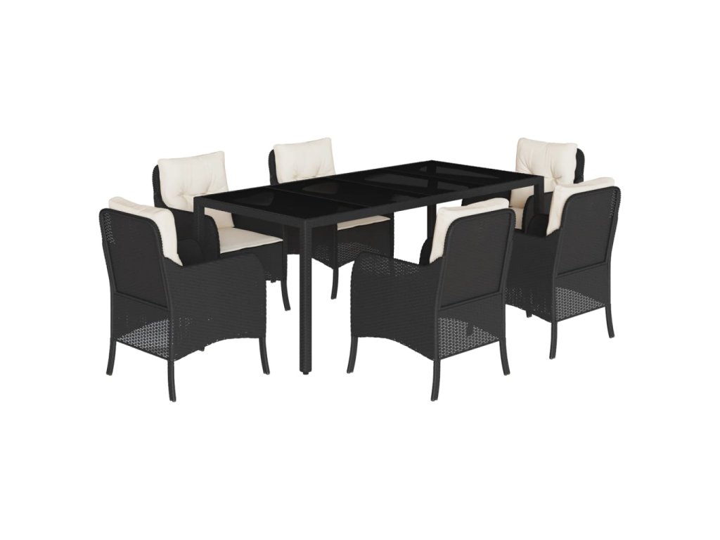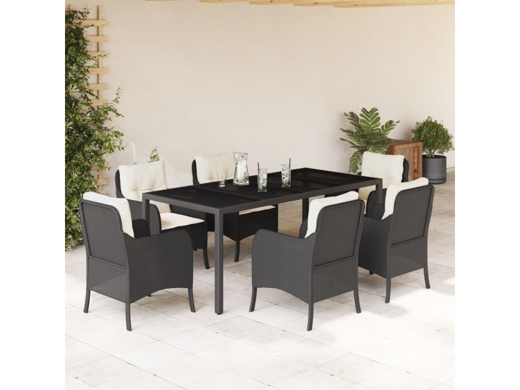 7dílný zahradní jídelní set s poduškami černý polyratan 3211846