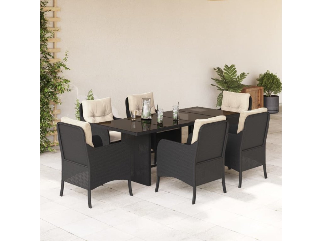 7dílný zahradní jídelní set s poduškami černý polyratan 3211878