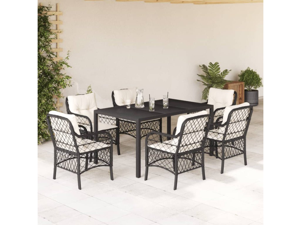 7dílný zahradní jídelní set s poduškami černý polyratan 3212021