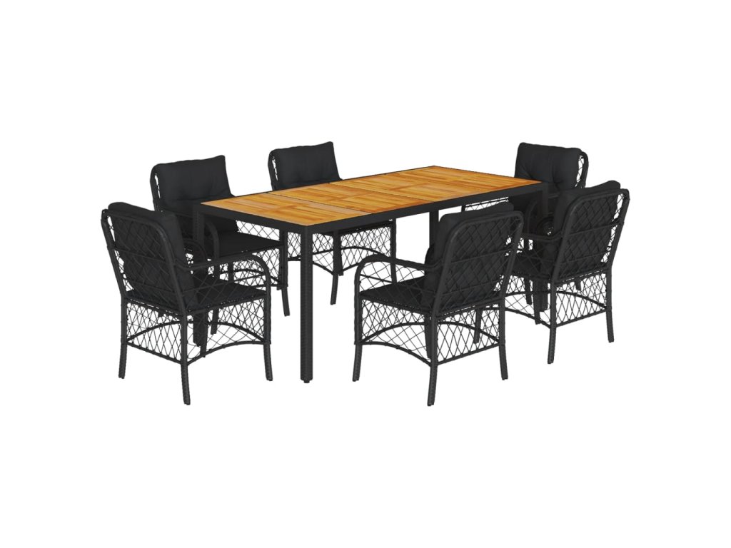 7dílný zahradní jídelní set s poduškami černý polyratan 3212046