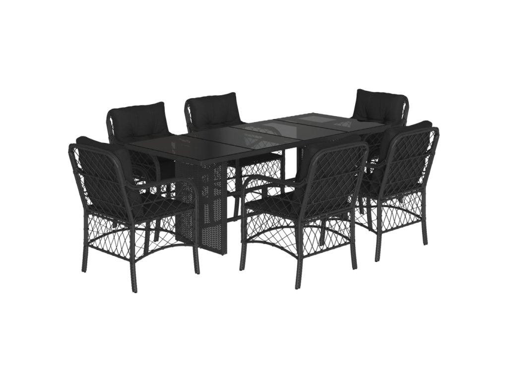 7dílný zahradní jídelní set s poduškami černý polyratan 3212056