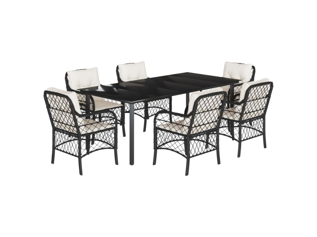 7dílný zahradní jídelní set s poduškami černý polyratan 3212094