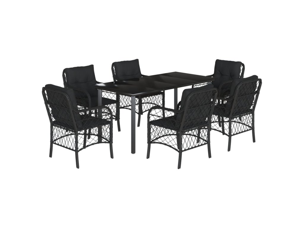 7dílný zahradní jídelní set s poduškami černý polyratan 3212107