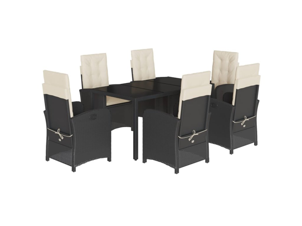 7dílný zahradní jídelní set s poduškami černý polyratan 3212198