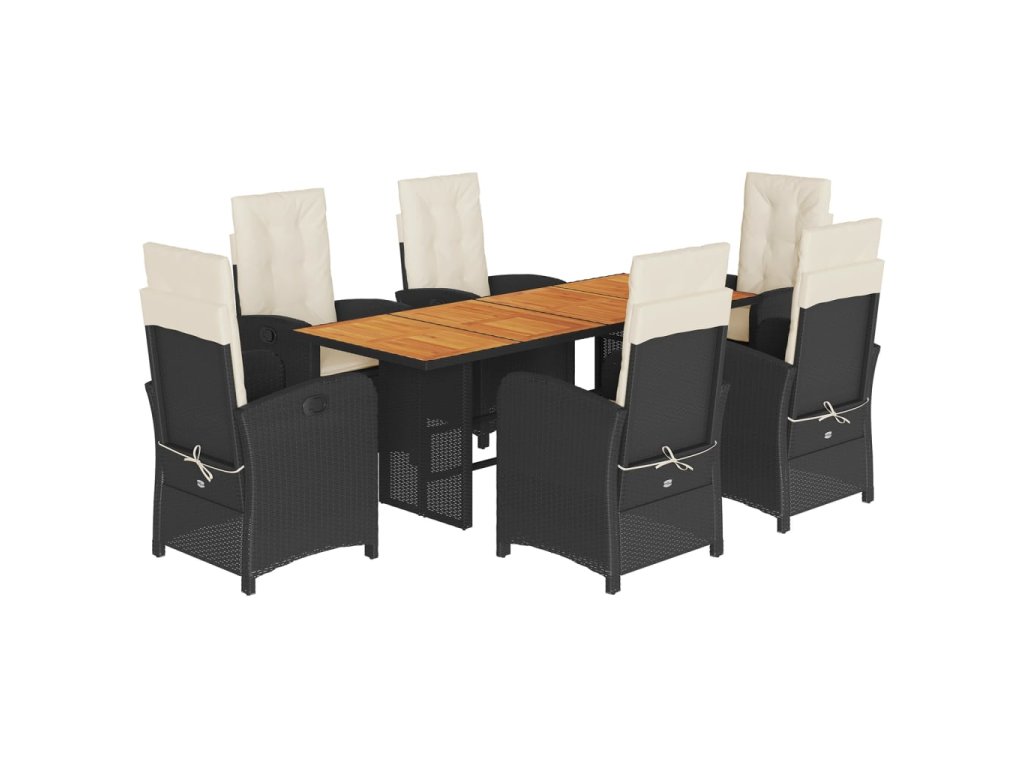7dílný zahradní jídelní set s poduškami černý polyratan 3212272
