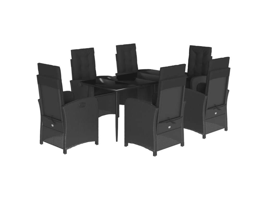 7dílný zahradní jídelní set s poduškami černý polyratan 3212315