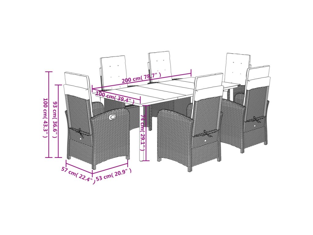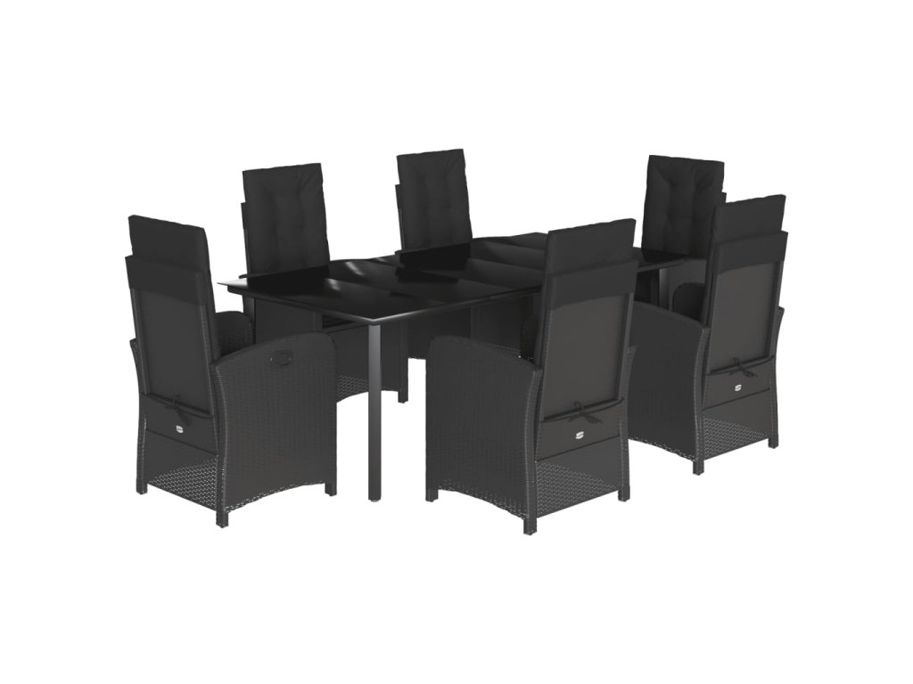 7dílný zahradní jídelní set s poduškami černý polyratan 3212327