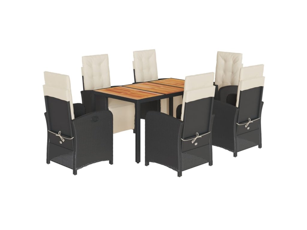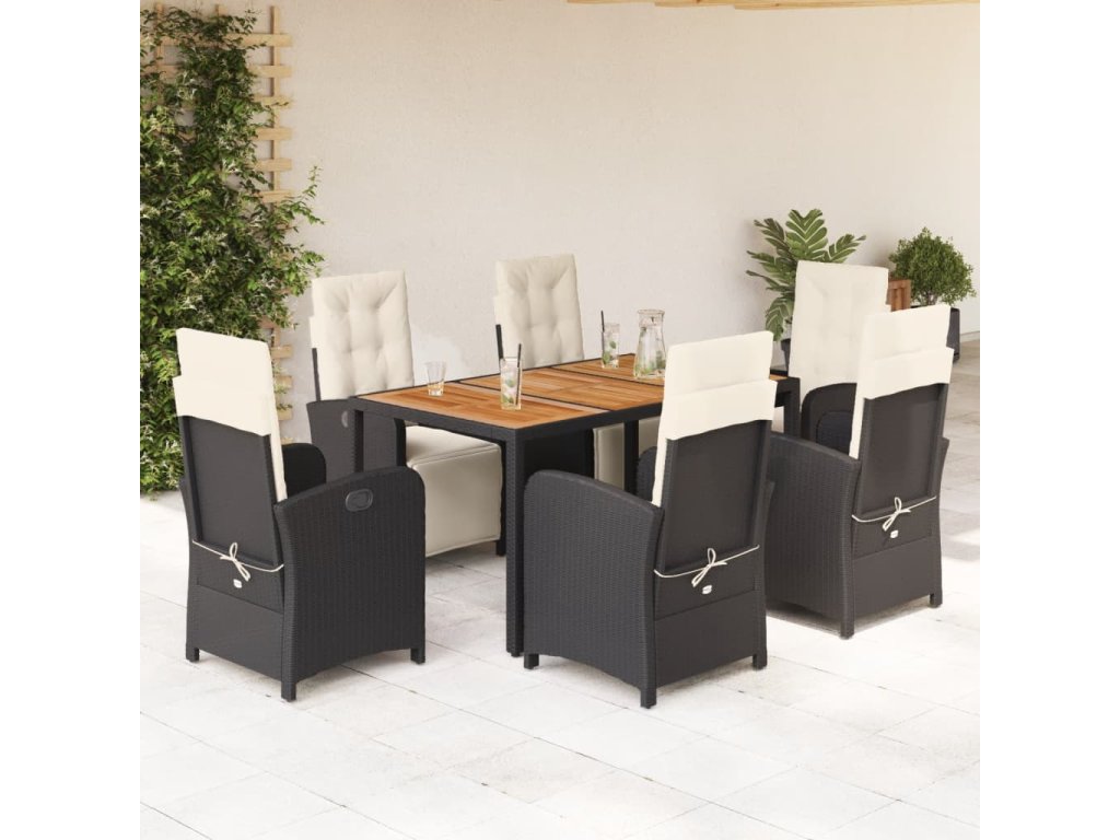 7dílný zahradní jídelní set s poduškami černý polyratan 3212471