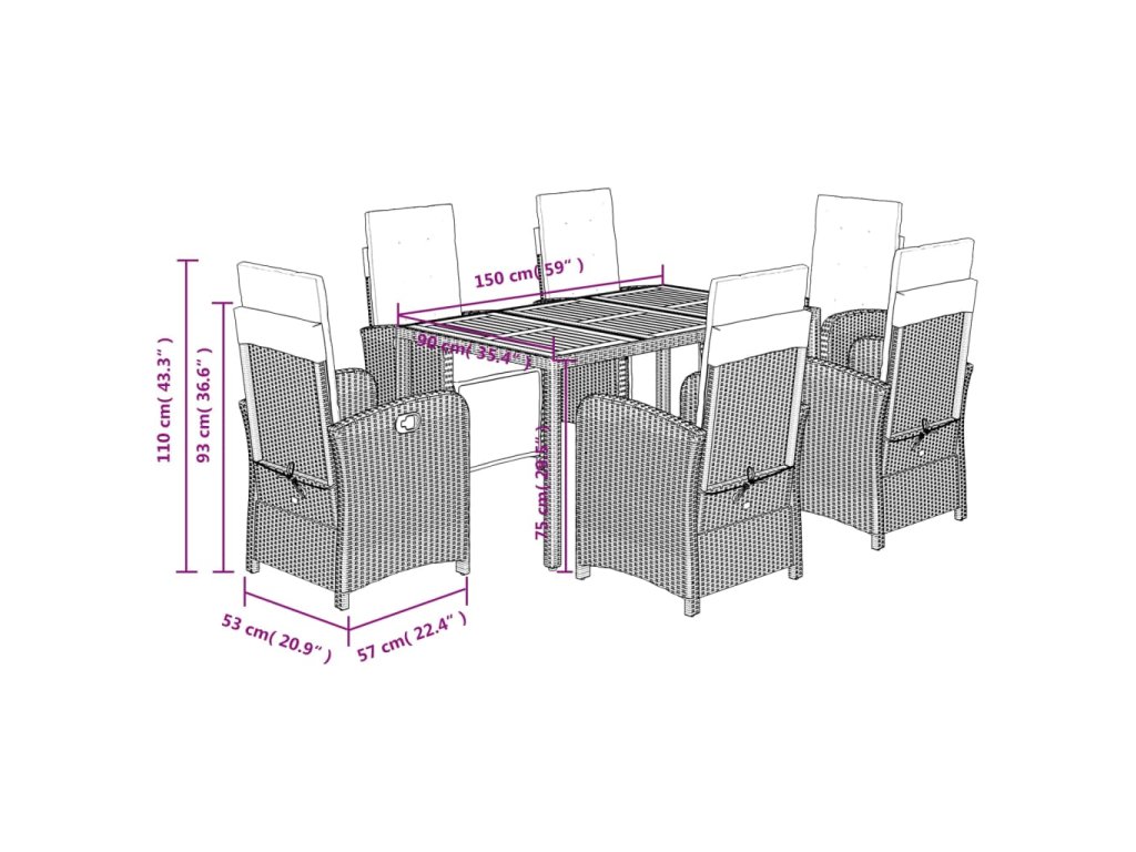 - Materiál: PE ratan, práškově lakovaná ocel, masivní akáciové dřevo