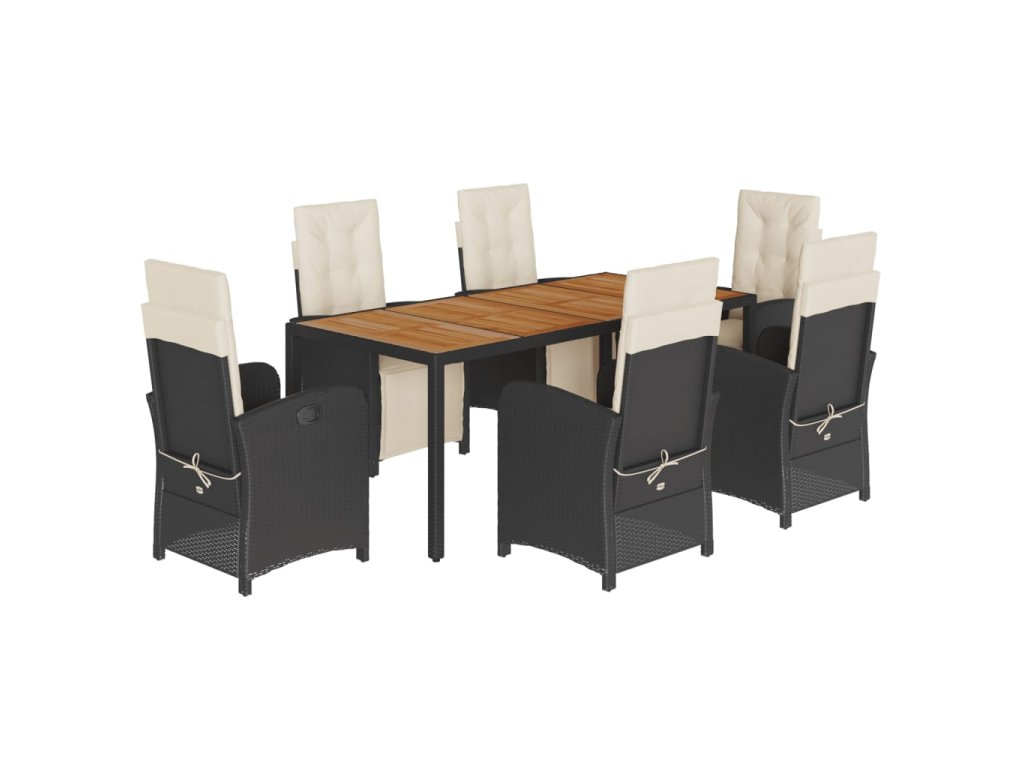 7dílný zahradní jídelní set s poduškami černý polyratan 3212472