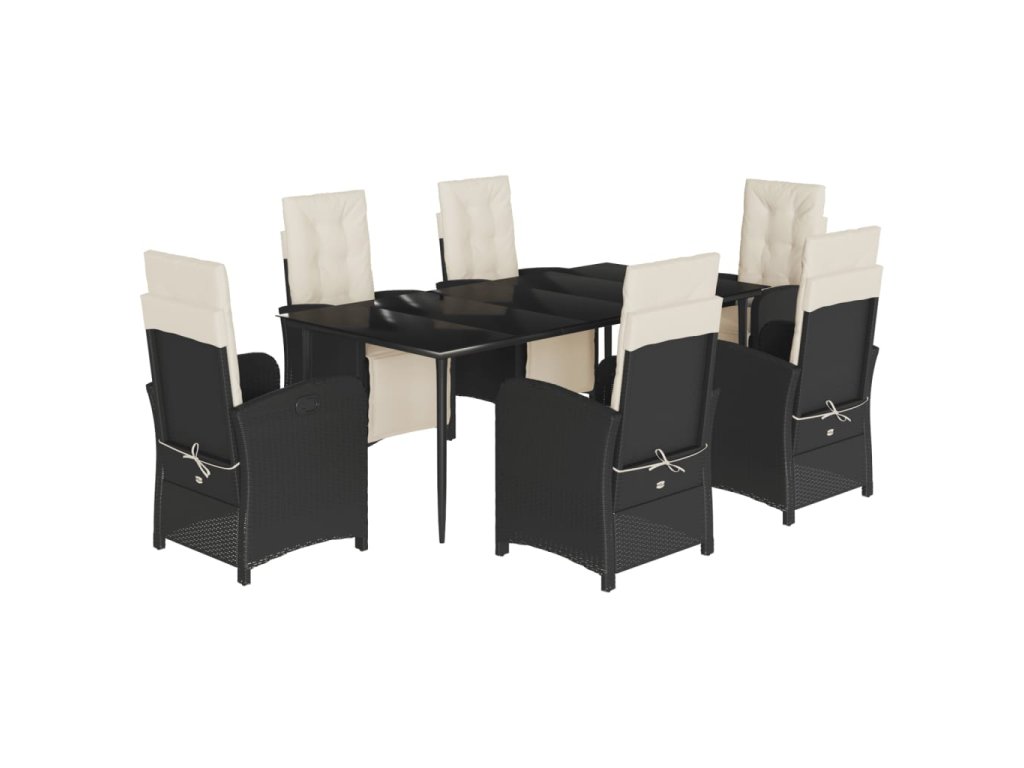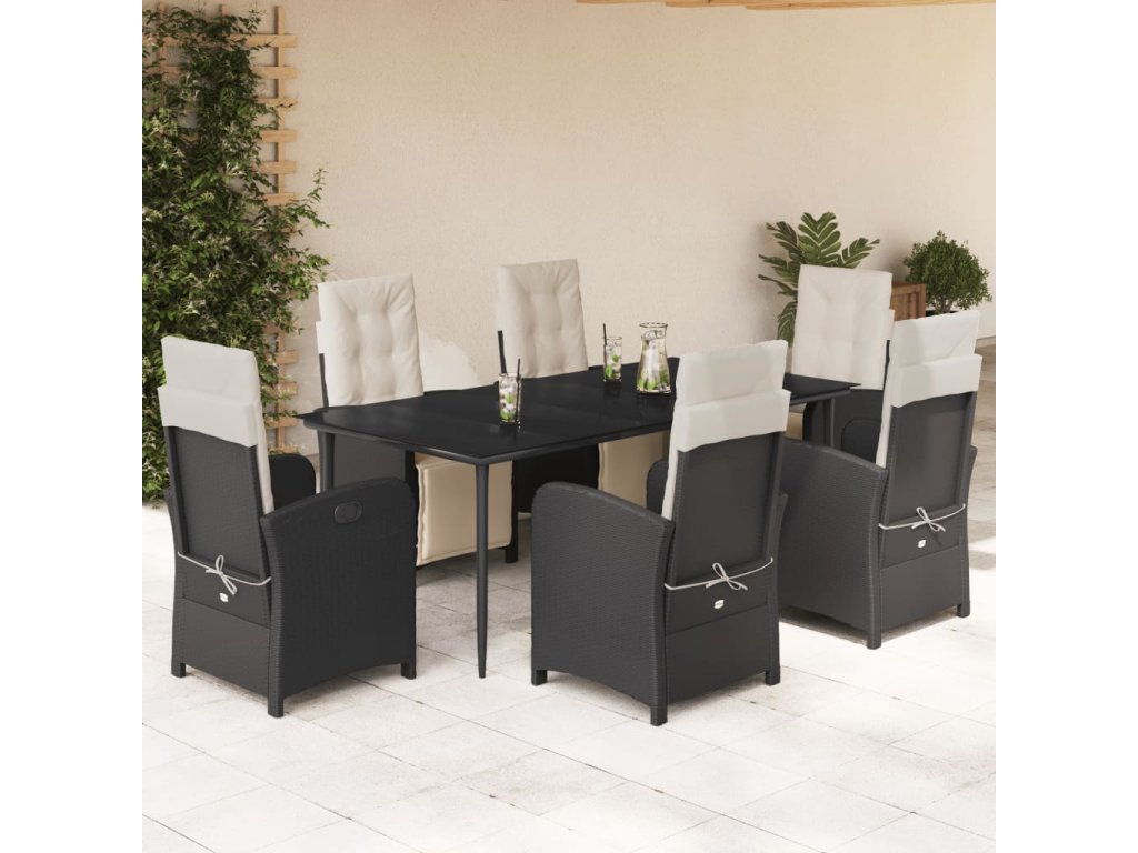 7dílný zahradní jídelní set s poduškami černý polyratan 3212519