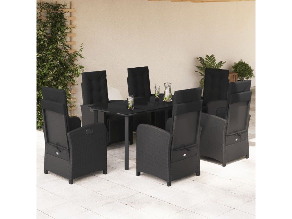 7dílný zahradní jídelní set s poduškami černý polyratan 3212539