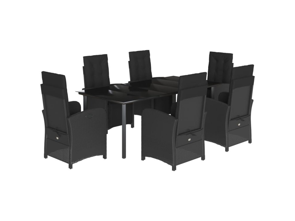 7dílný zahradní jídelní set s poduškami černý polyratan 3212540