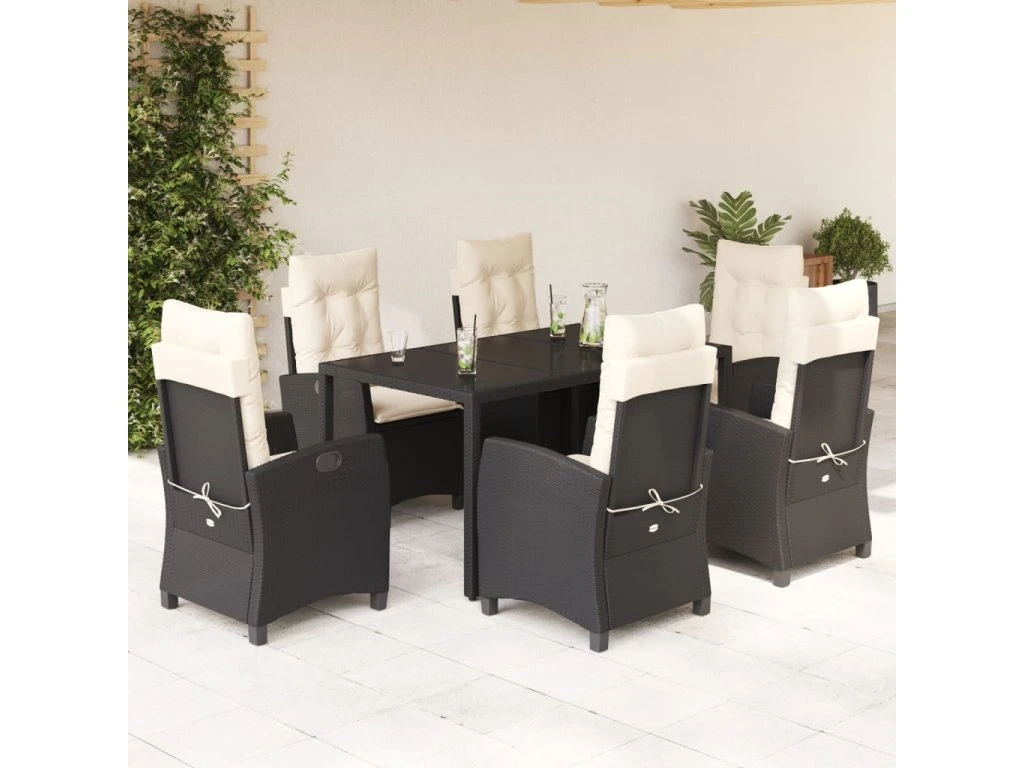 7dílný zahradní jídelní set s poduškami černý polyratan 3212631
