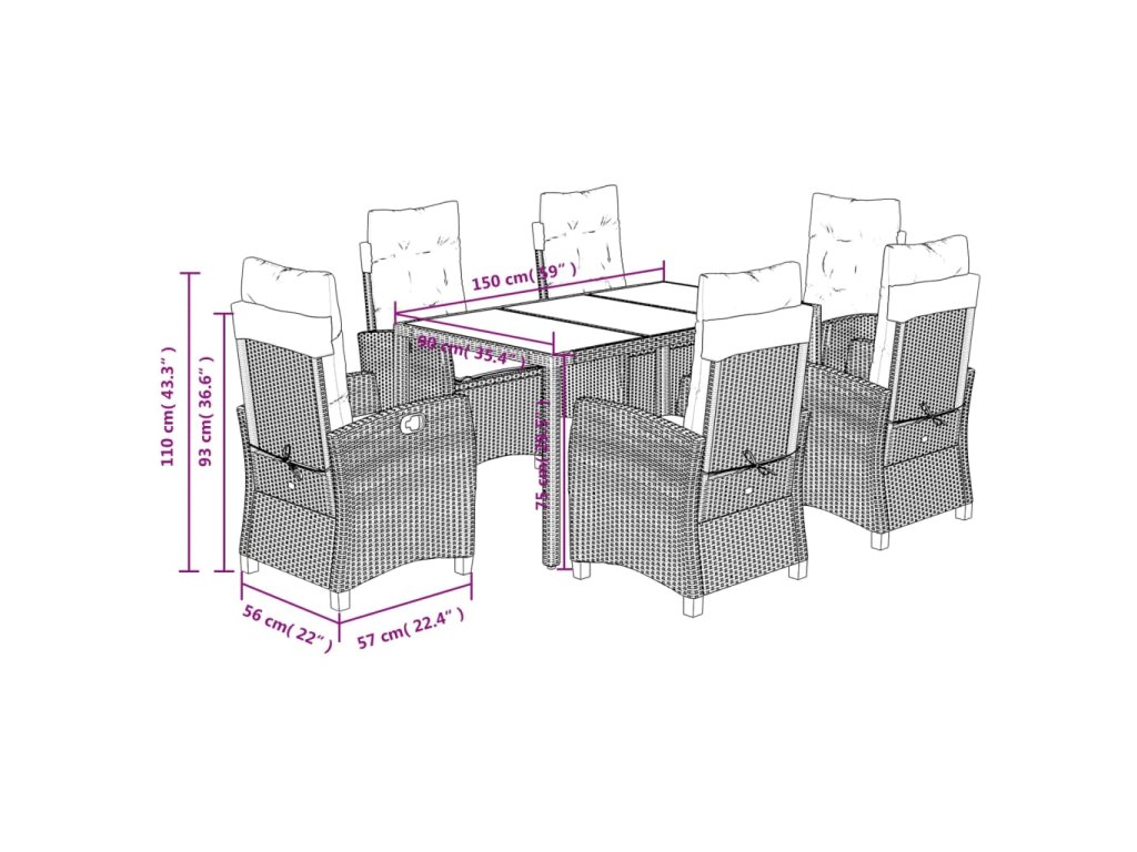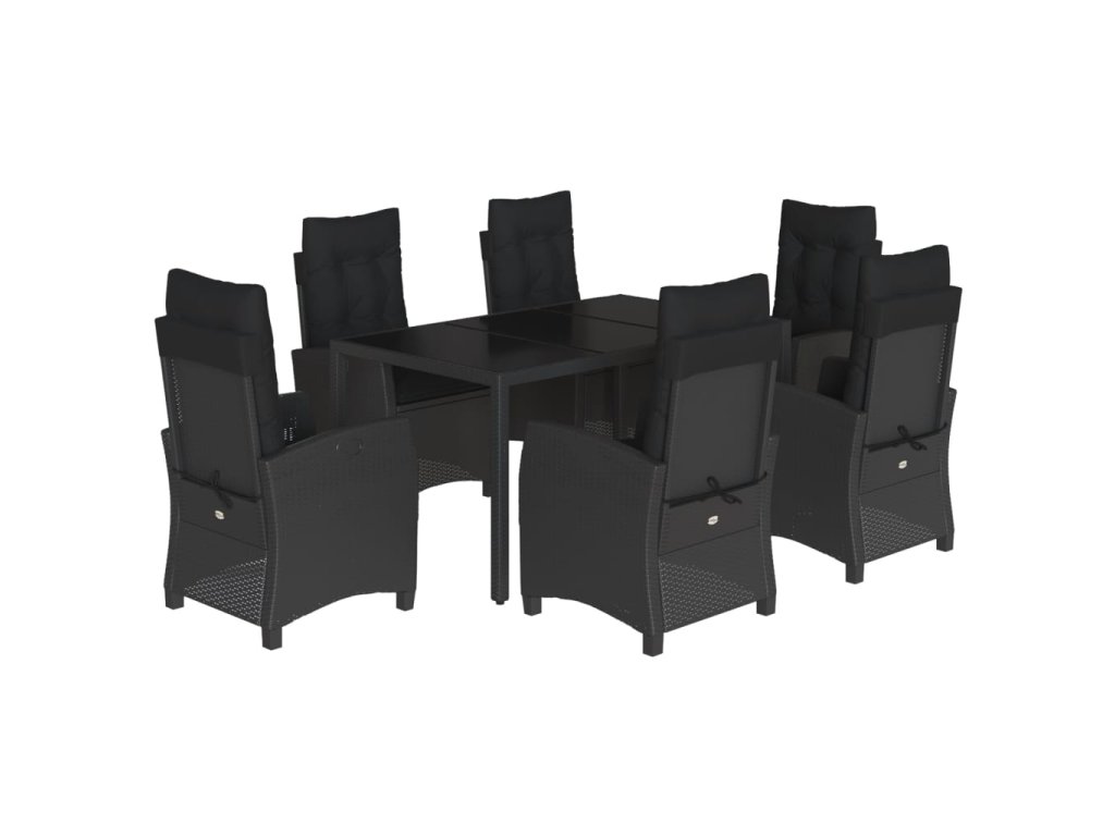 7dílný zahradní jídelní set s poduškami černý polyratan 3212639