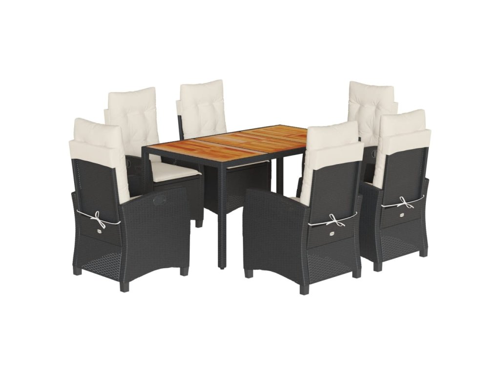 7dílný zahradní jídelní set s poduškami černý polyratan 3212657