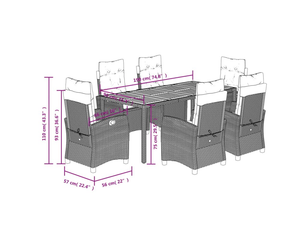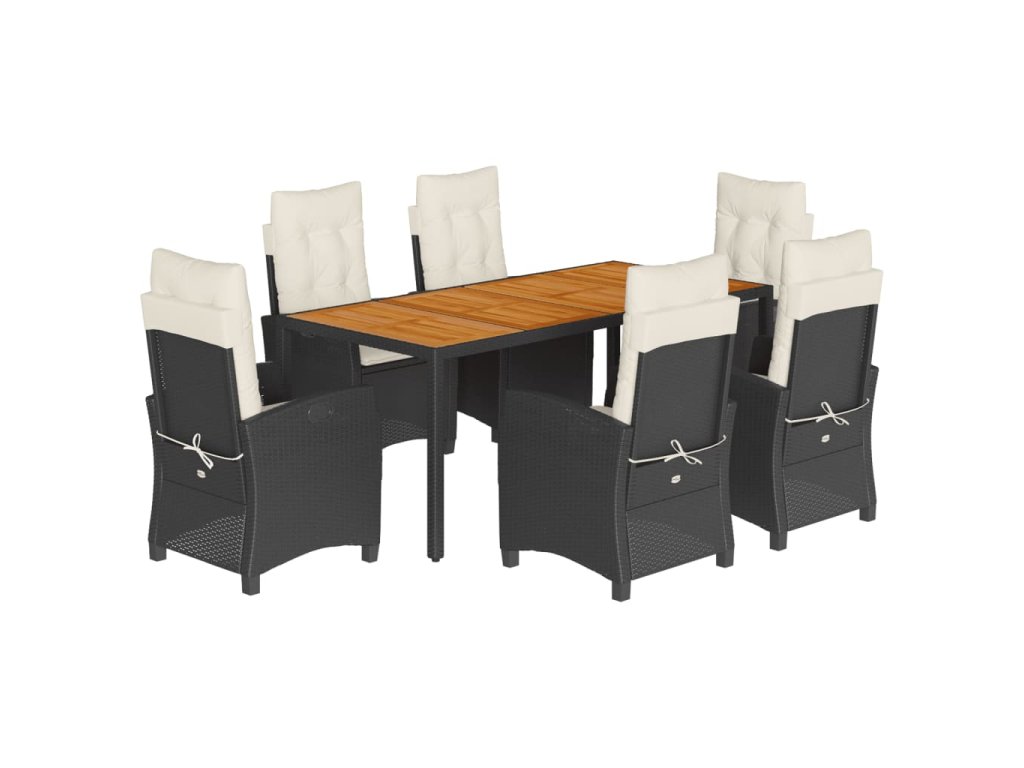 7dílný zahradní jídelní set s poduškami černý polyratan 3212659