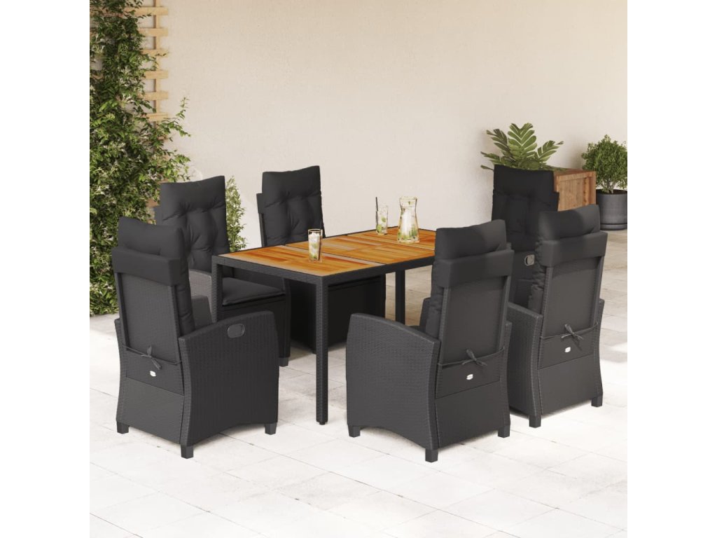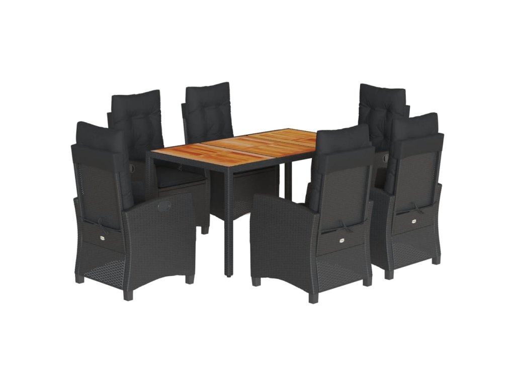 7dílný zahradní jídelní set s poduškami černý polyratan 3212667