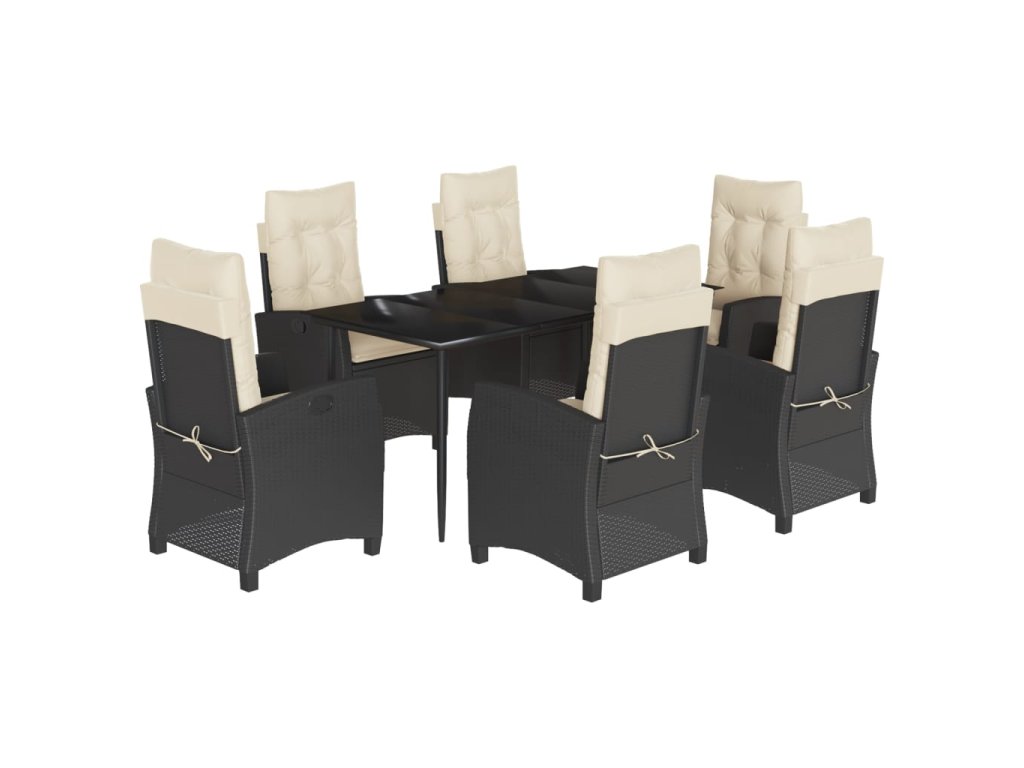 7dílný zahradní jídelní set s poduškami černý polyratan 3212727