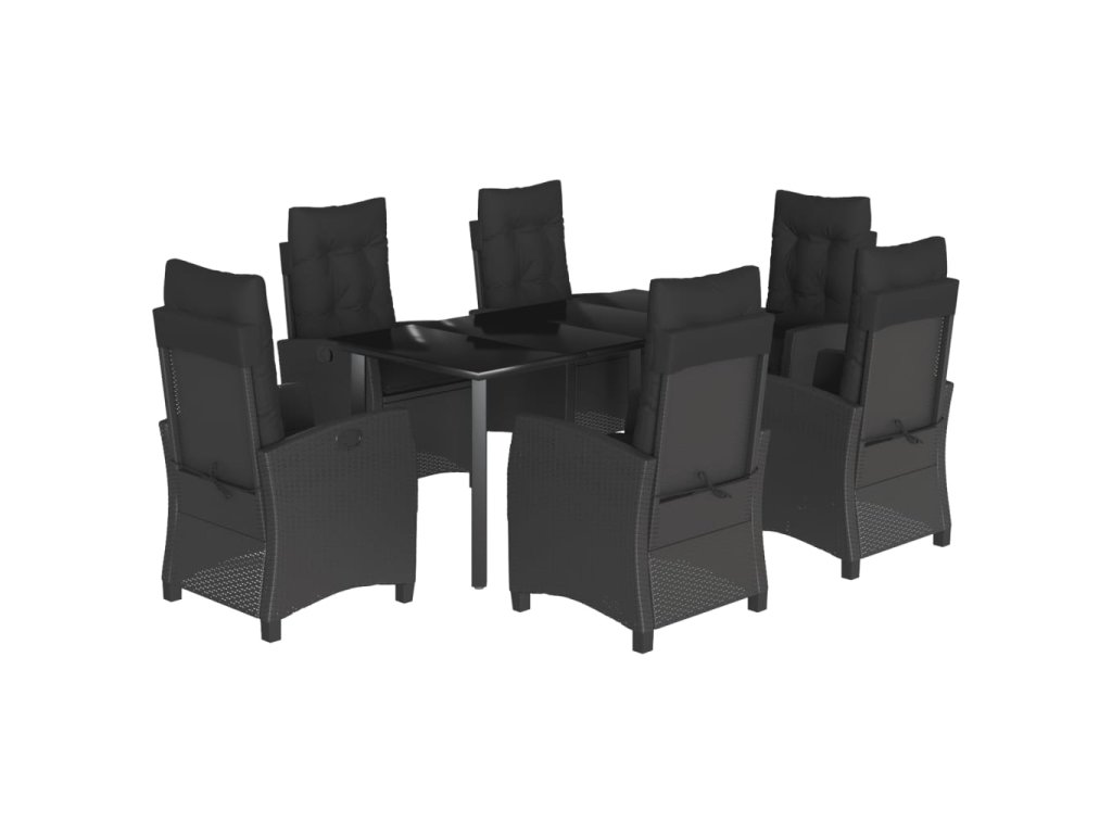 7dílný zahradní jídelní set s poduškami černý polyratan 3212758