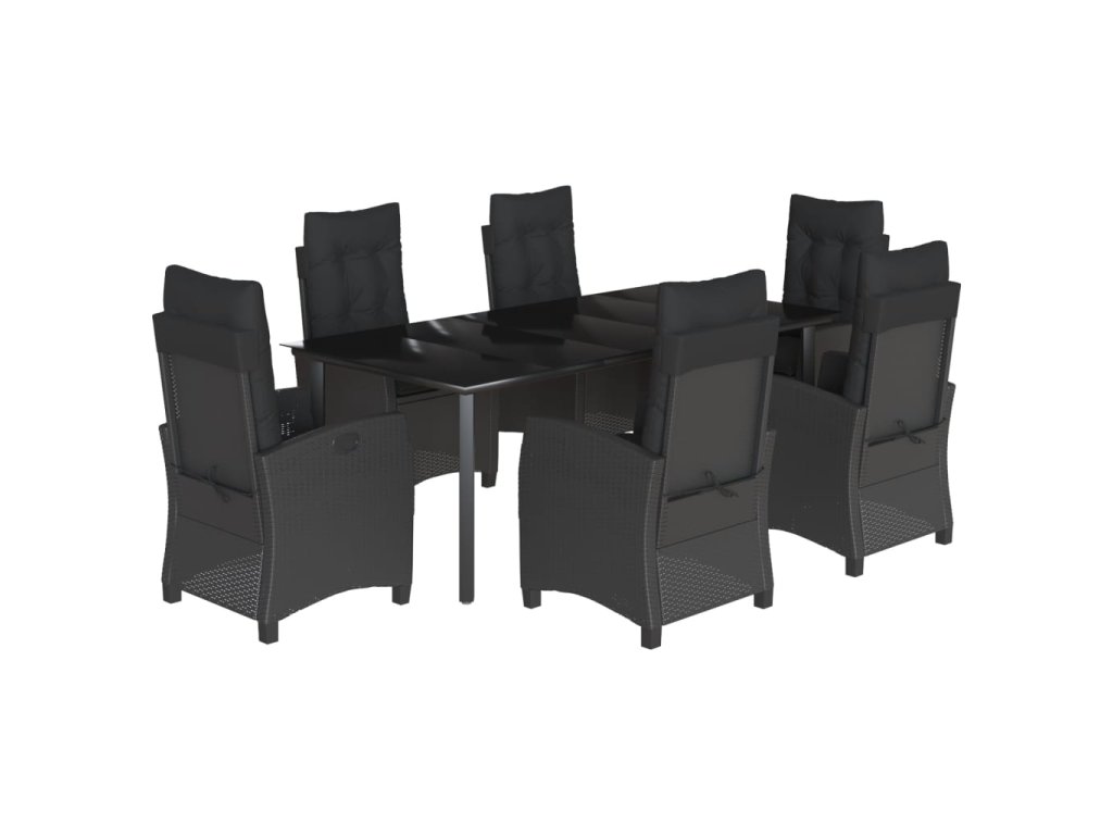 7dílný zahradní jídelní set s poduškami černý polyratan 3212759