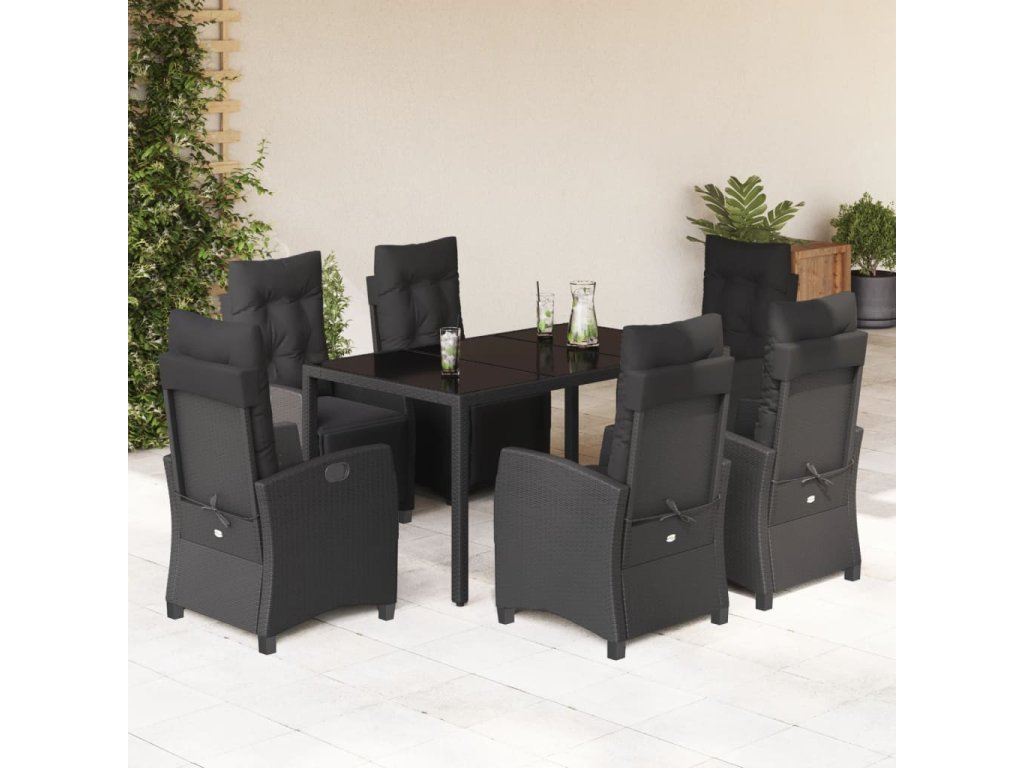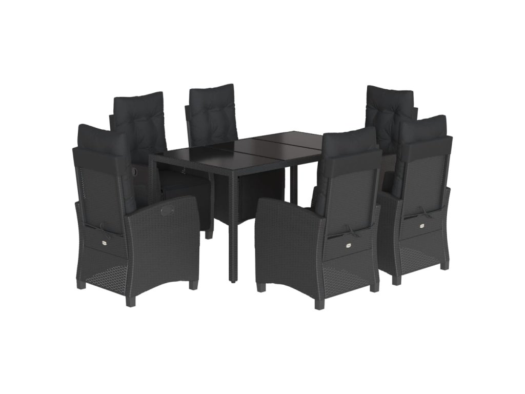 7dílný zahradní jídelní set s poduškami černý polyratan 3212891
