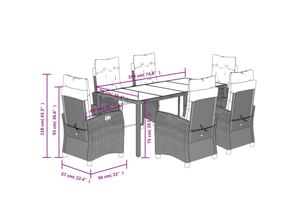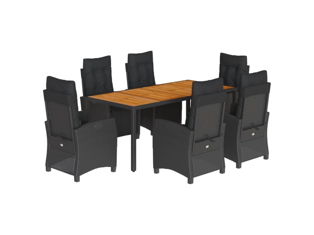 7dílný zahradní jídelní set s poduškami černý polyratan 3212910