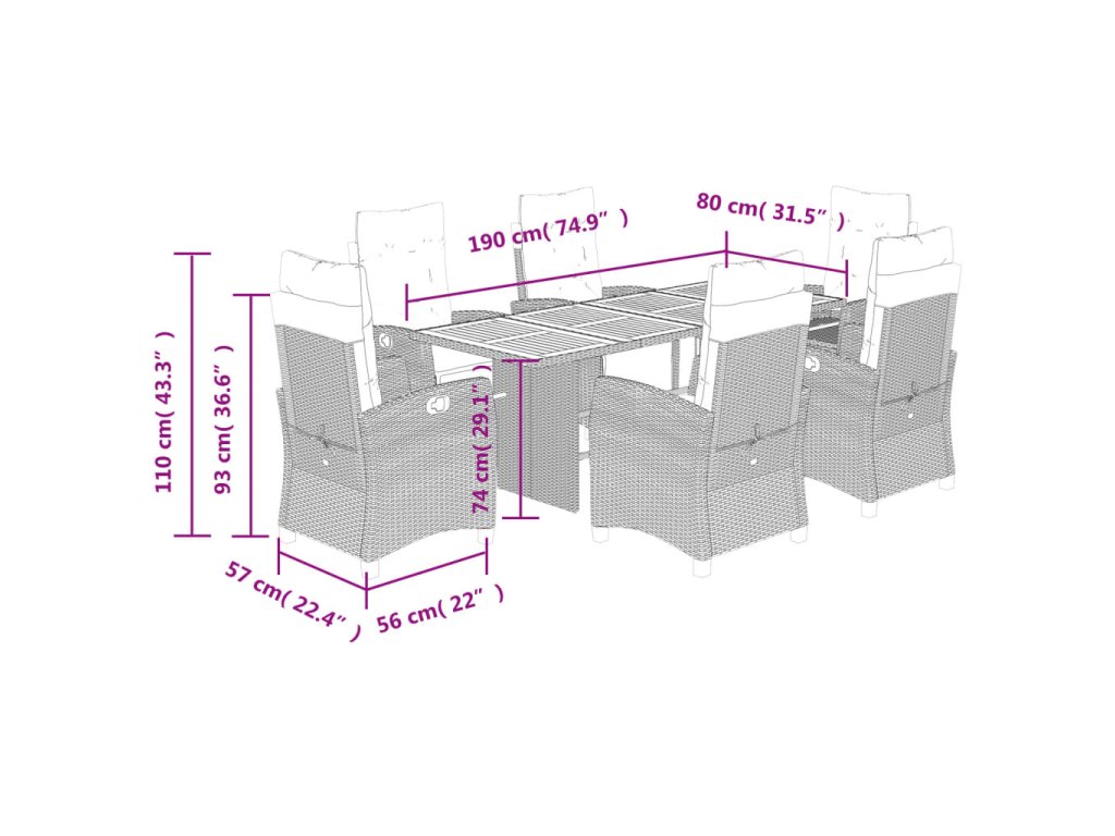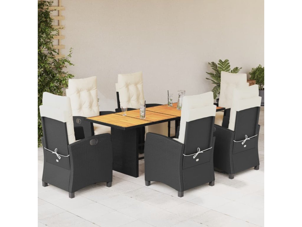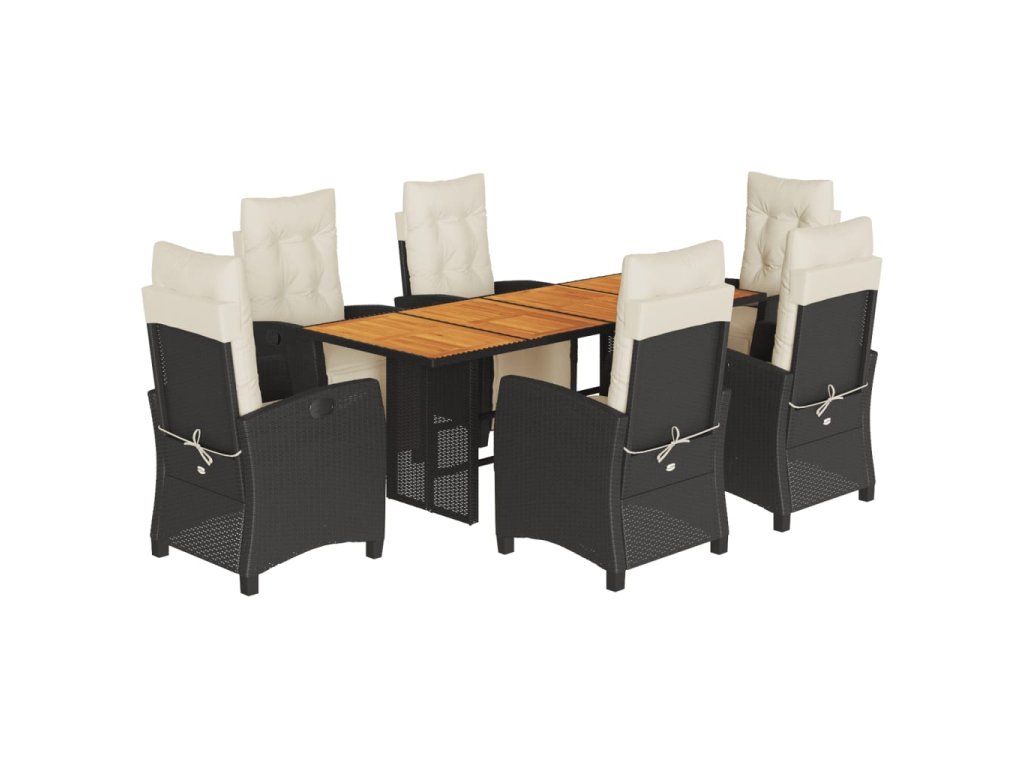 7dílný zahradní jídelní set s poduškami černý polyratan 3212934
