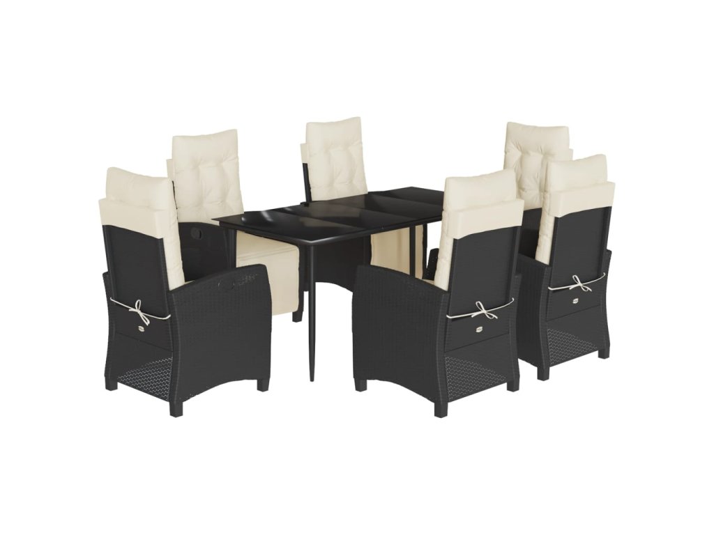 7dílný zahradní jídelní set s poduškami černý polyratan 3212950