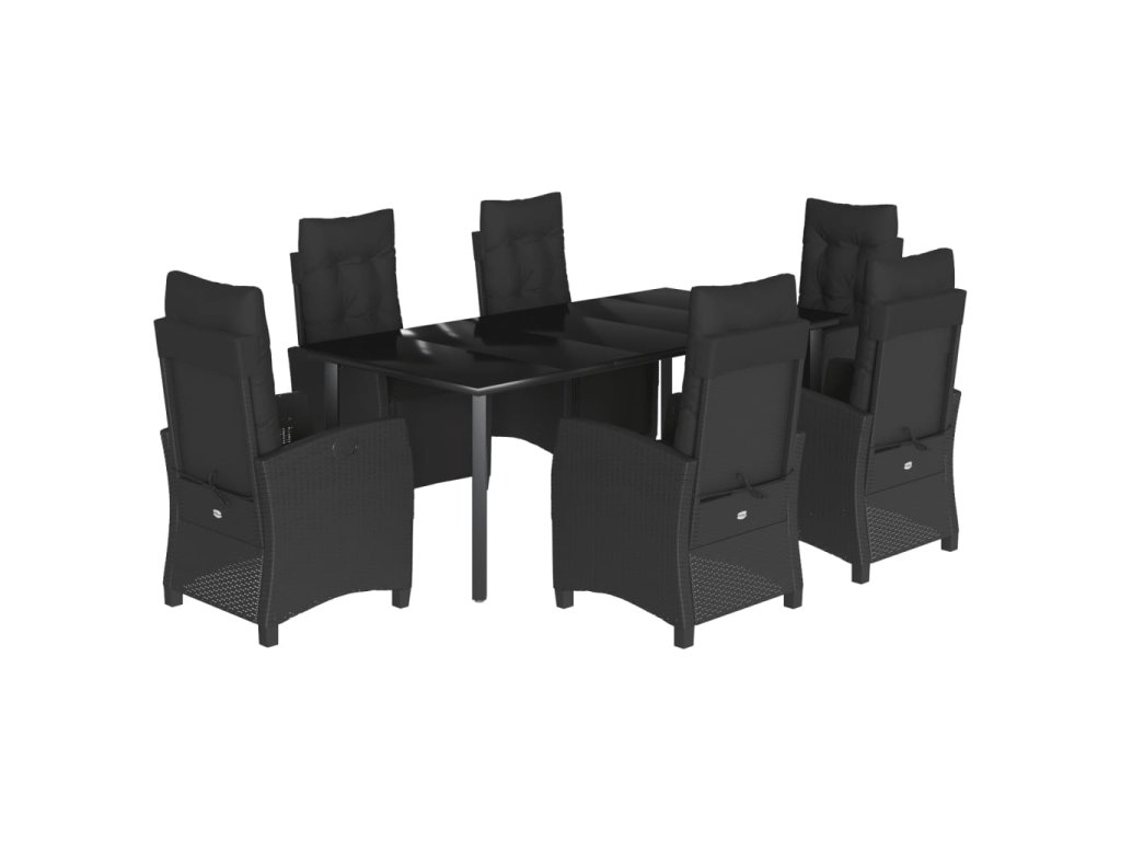 7dílný zahradní jídelní set s poduškami černý polyratan 3212972