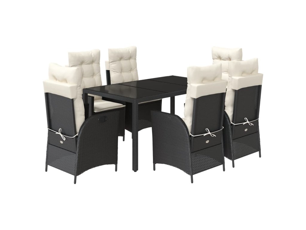 7dílný zahradní jídelní set s poduškami černý polyratan 3213062