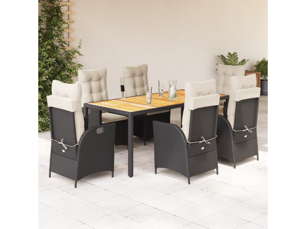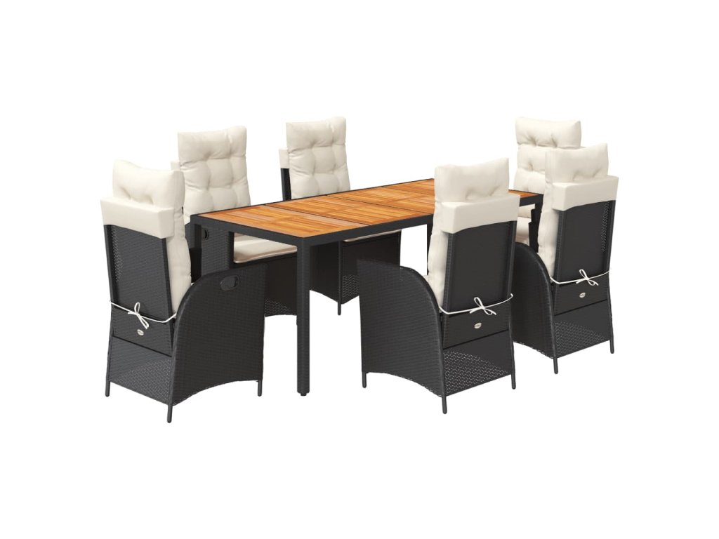 7dílný zahradní jídelní set s poduškami černý polyratan 3213091