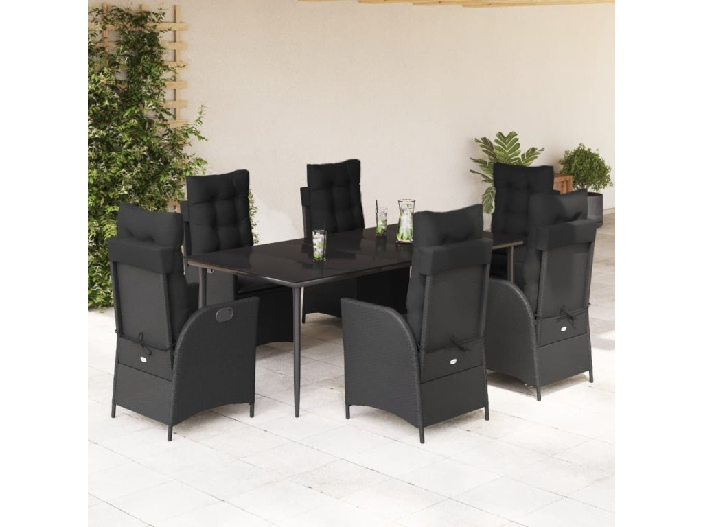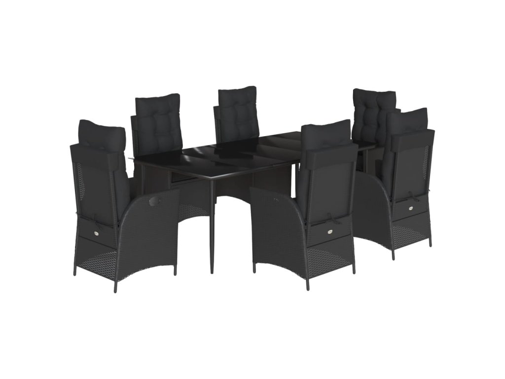 7dílný zahradní jídelní set s poduškami černý polyratan 3213181