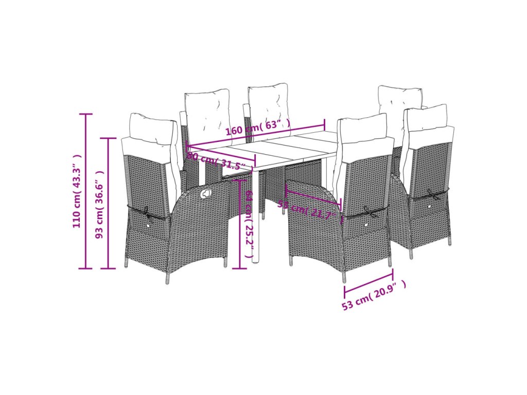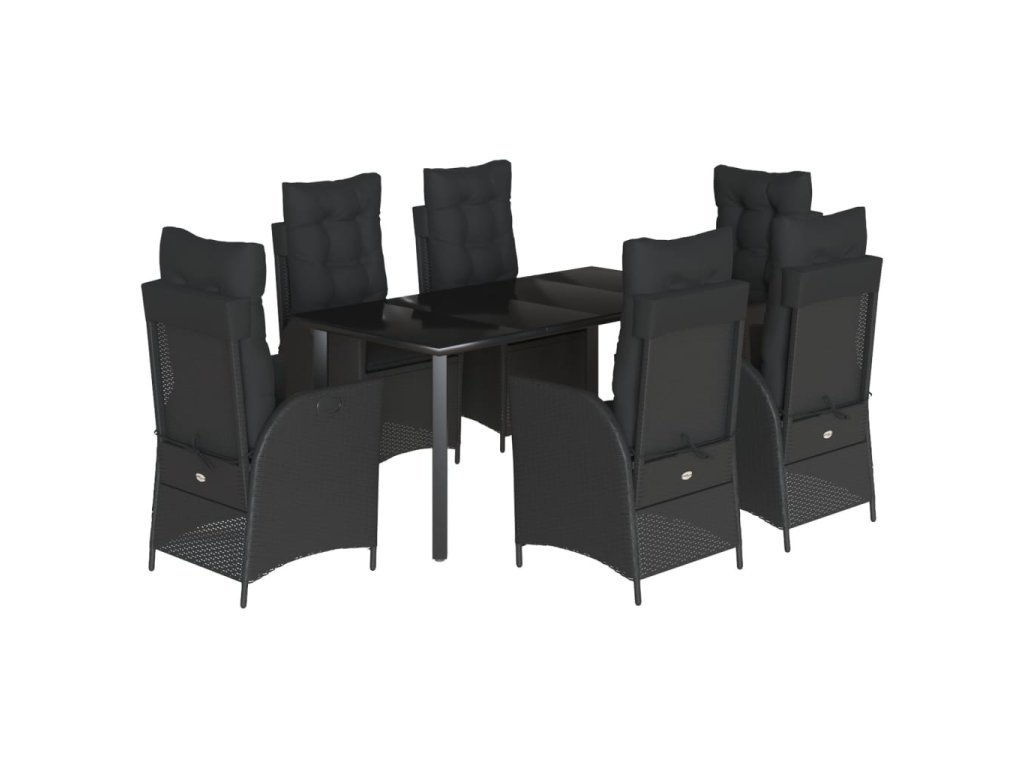7dílný zahradní jídelní set s poduškami černý polyratan 3213190
