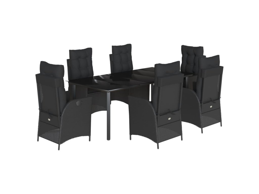 7dílný zahradní jídelní set s poduškami černý polyratan 3213191