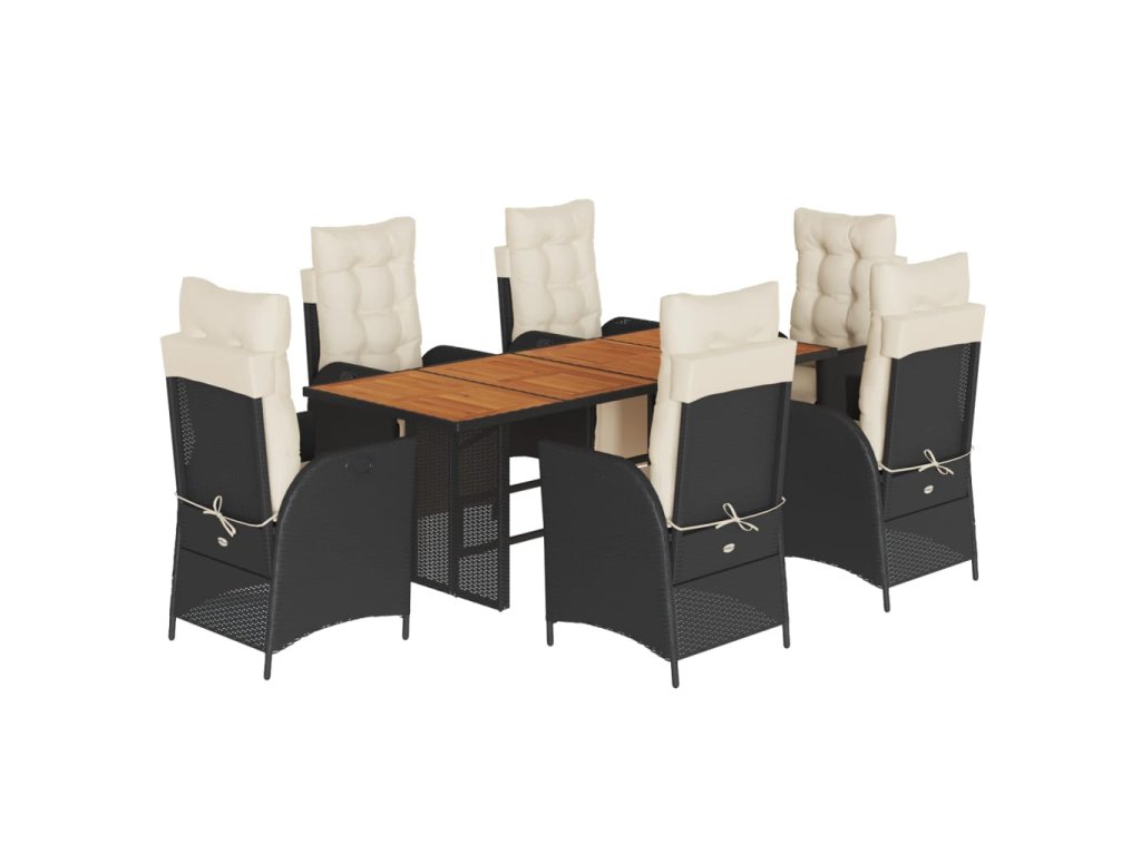 7dílný zahradní jídelní set s poduškami černý polyratan 3213366