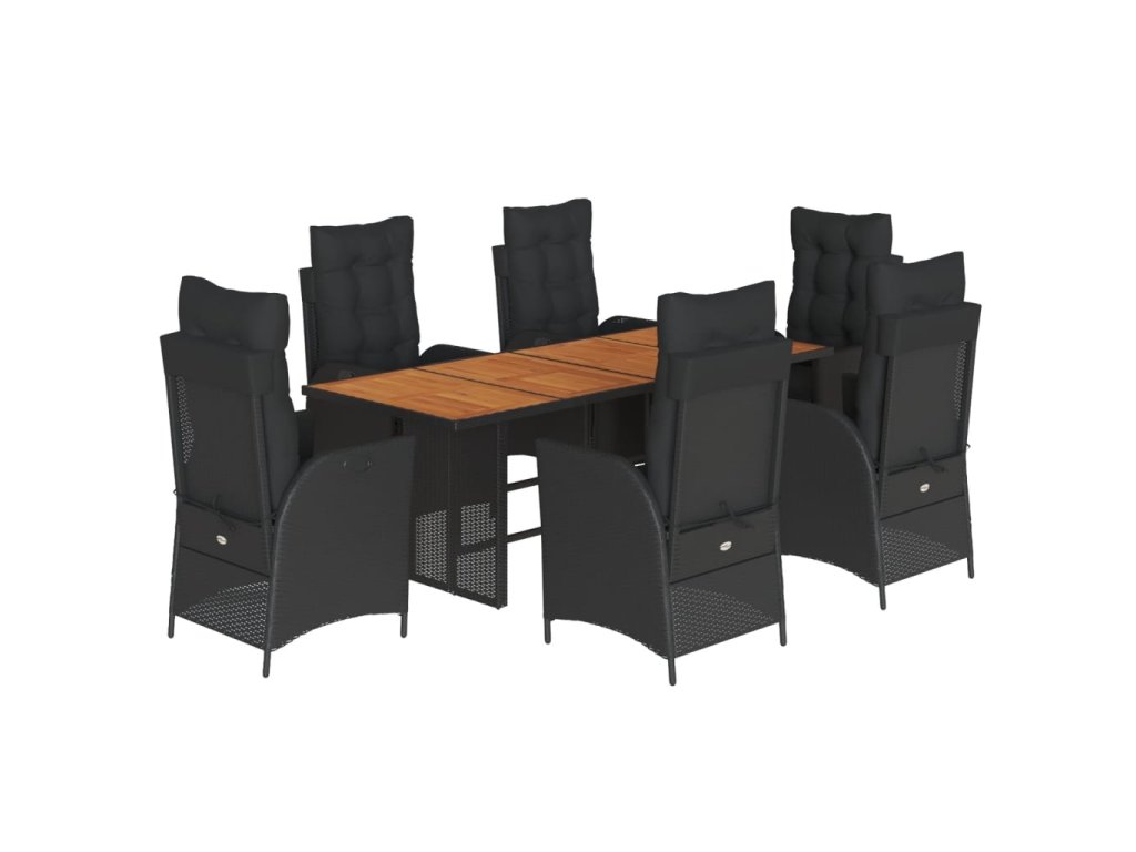 7dílný zahradní jídelní set s poduškami černý polyratan 3213368