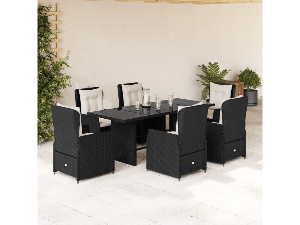 7dílný zahradní jídelní set s poduškami černý polyratan 3262777