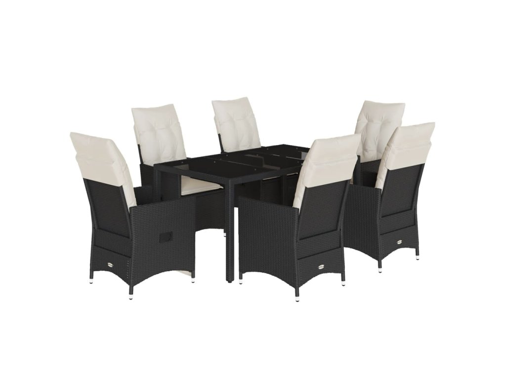 7dílný zahradní jídelní set s poduškami černý polyratan 3276696