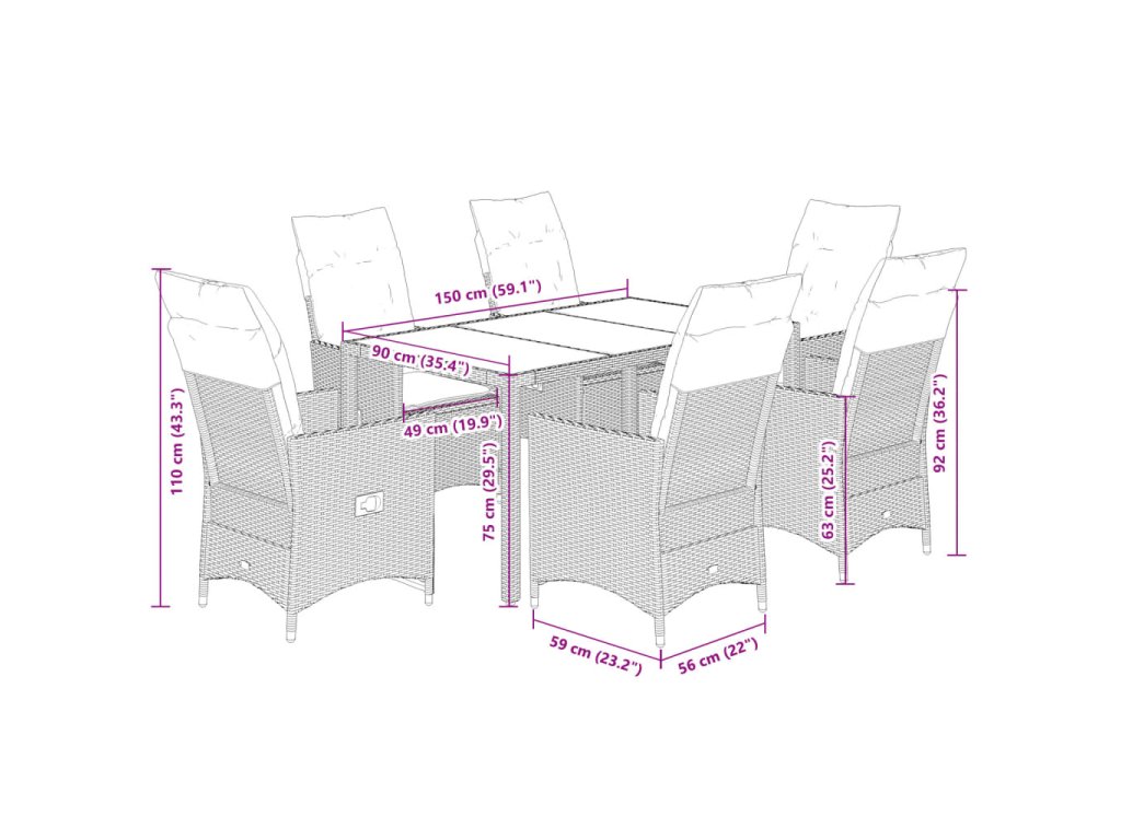 - Materiál: PE ratan, ocel, tvrzené sklo